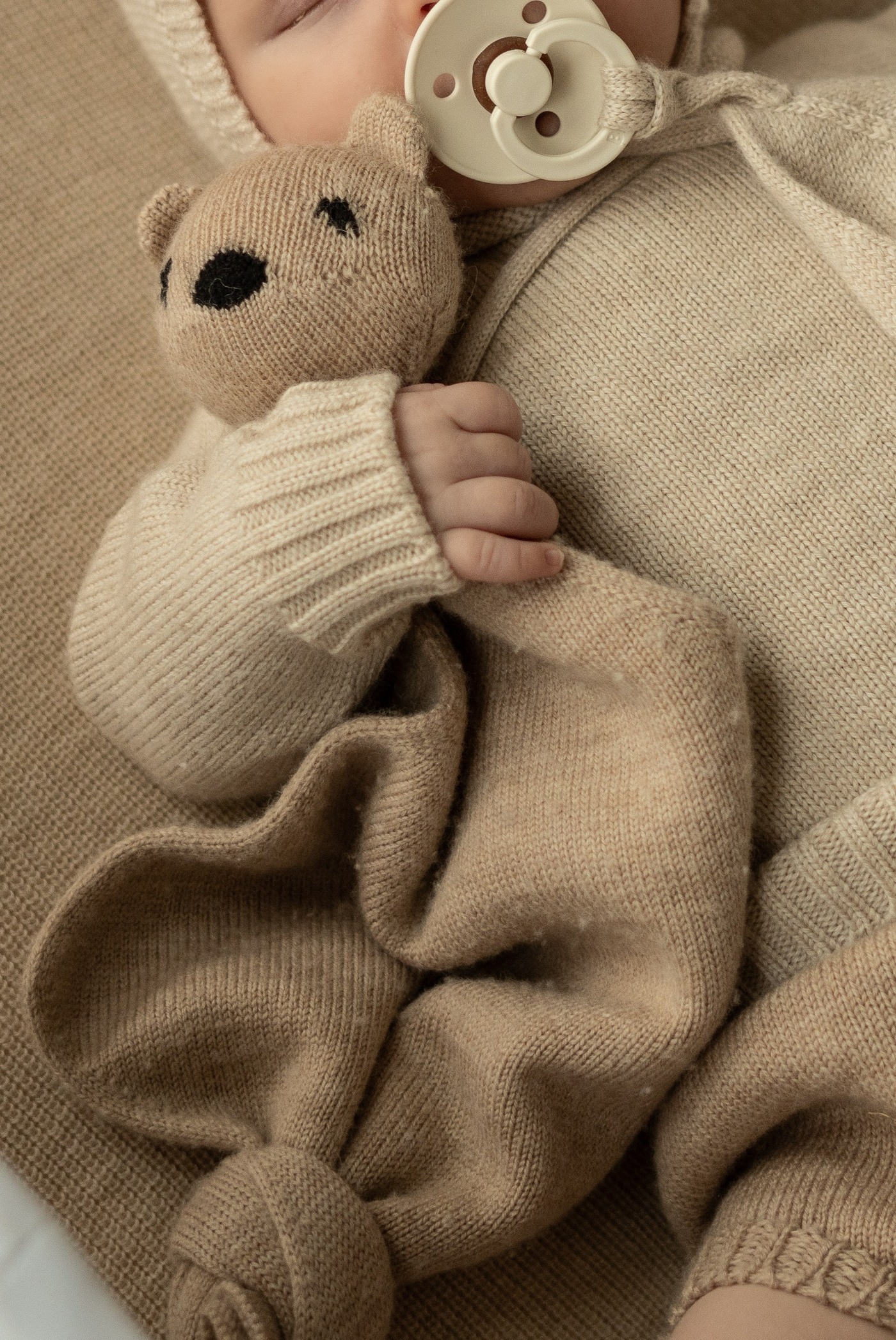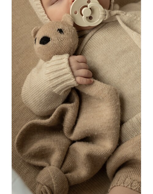 Hvid Teddy-Schmusetuch 'Tokki' aus Merinowolle - Sand