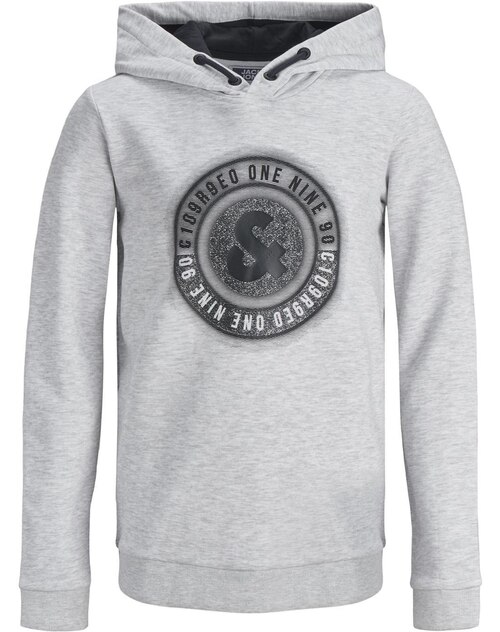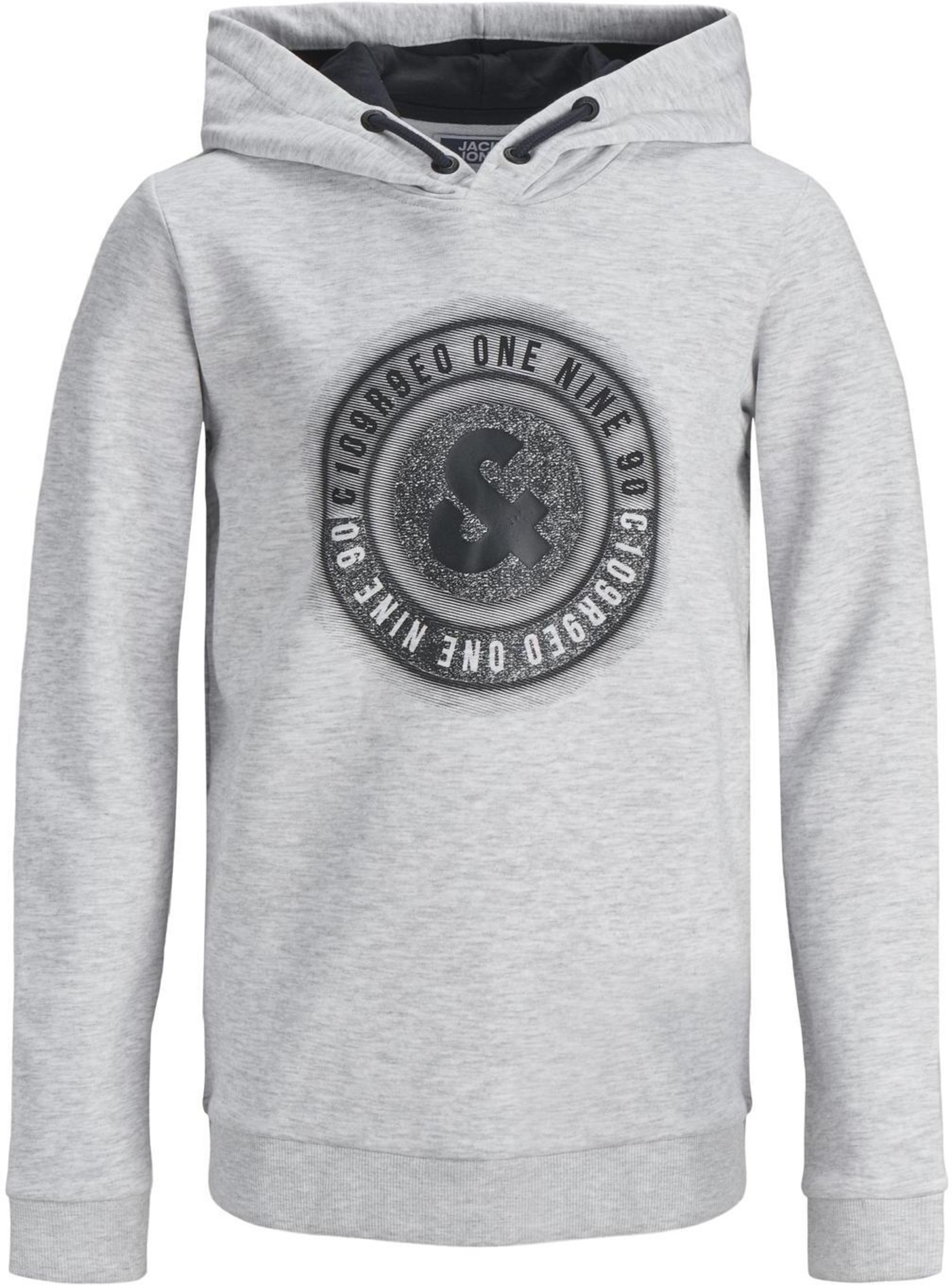 Stylischer Hoodie in white melange mit Logo-Print von JACK & JONES JUNIOR. Innen ist der Pullover weich gewebt und somit an kühlen Tagen ein toller Begleiter.