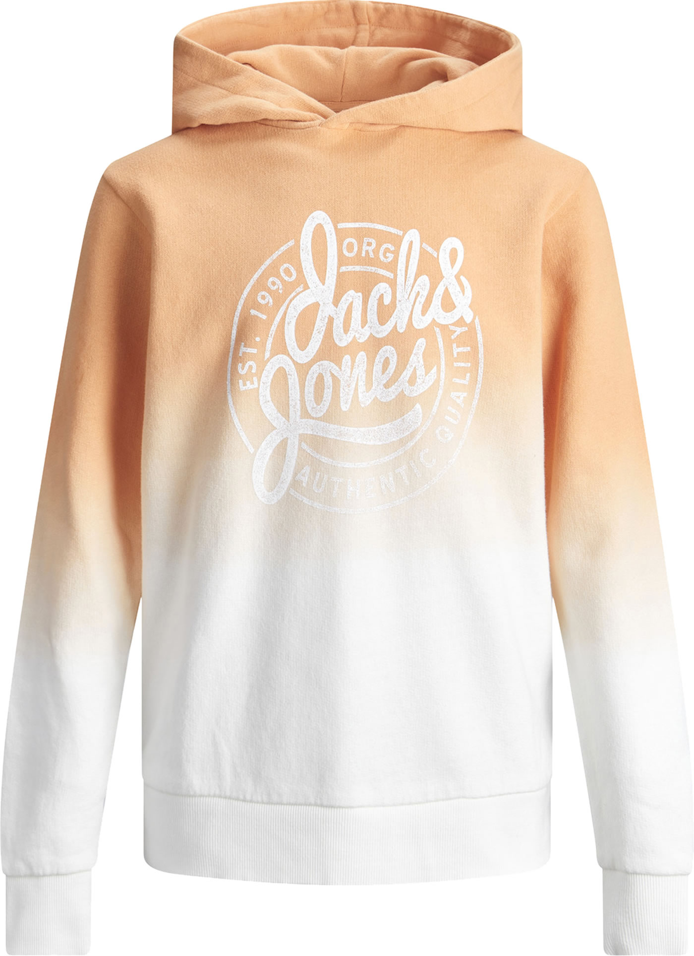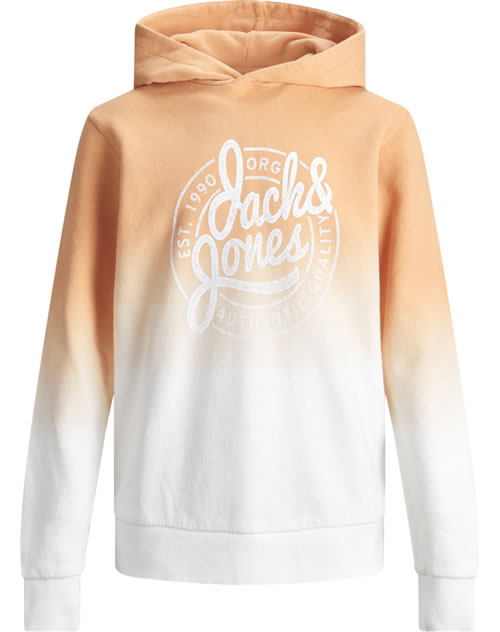 Stylisches Sweatshirt mit Logo von JACK & JONES auf der Vorderseite. Ein toller Hingucker ist der Farbverlauf von dunkel zu hell in Batik-Optik. Die Kapuze ist doppellagig.