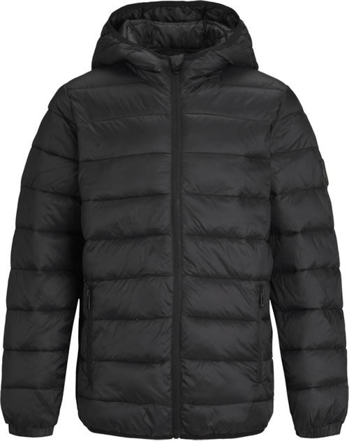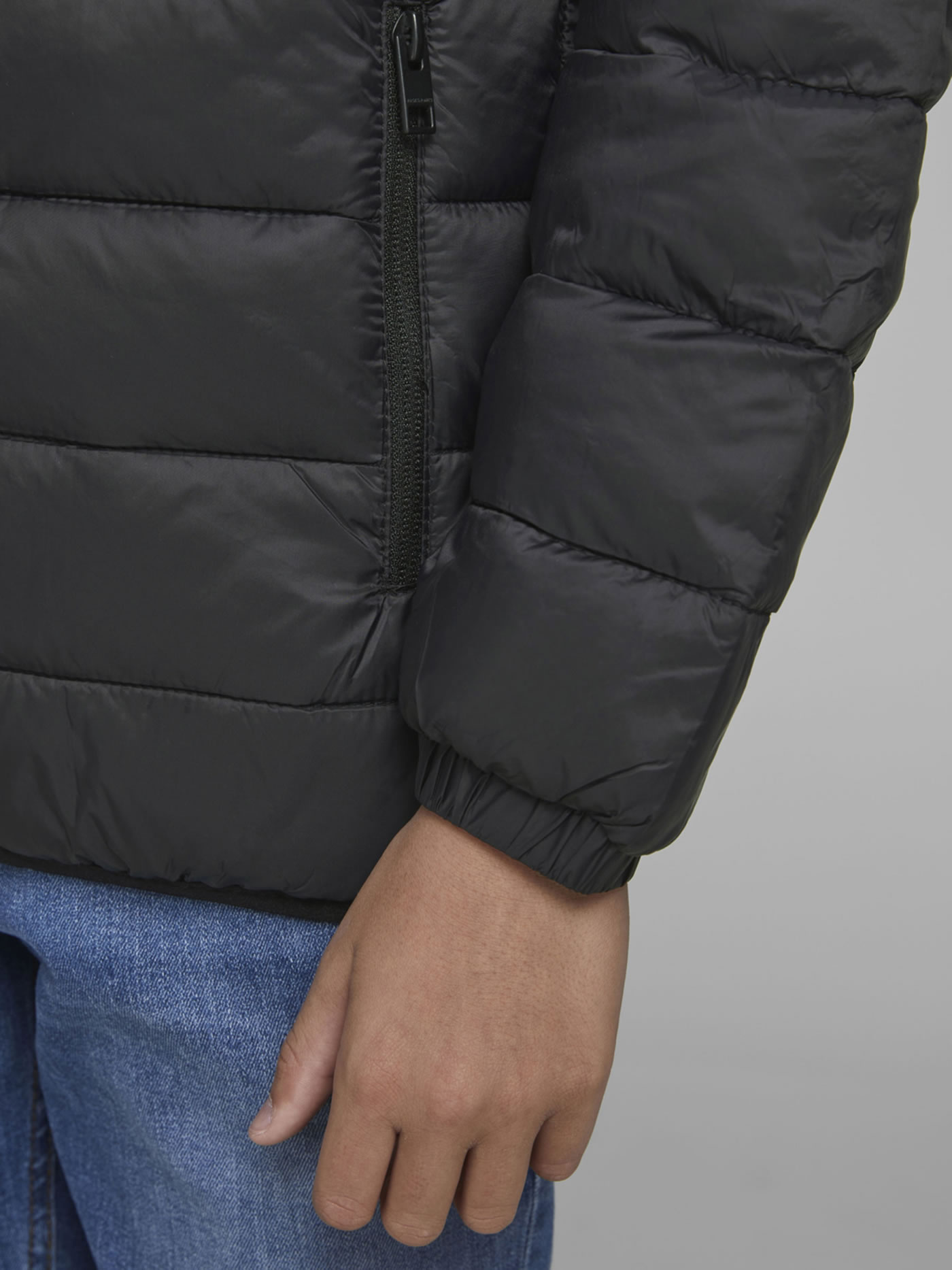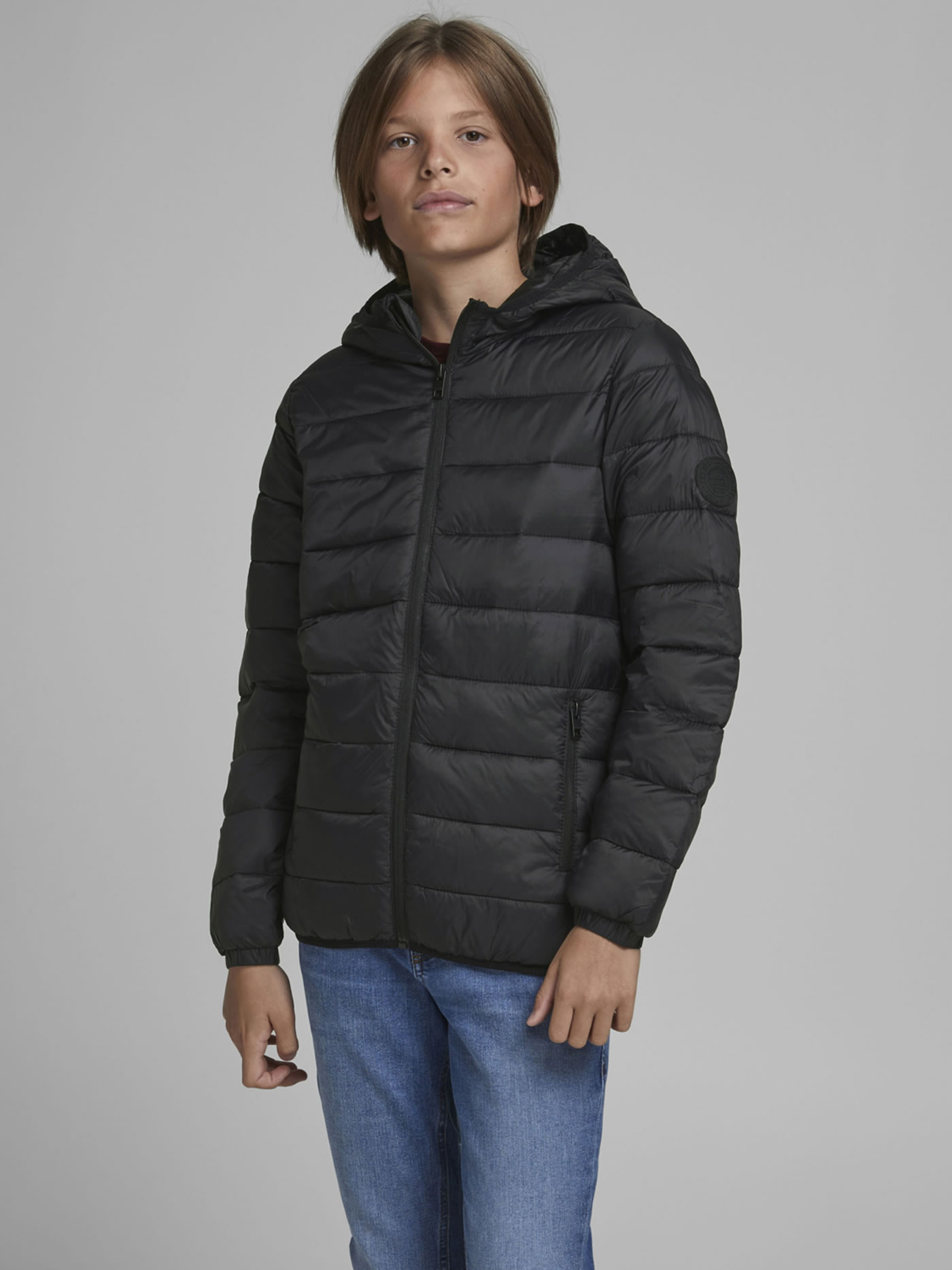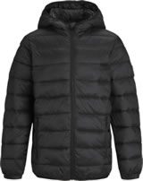 Tolle Jacke mit Kapuze von JACK & JONES JUNIOR für Jungen. Die gesteppte Jacke in schwarz hat zwei Reißverschlusstaschen mit Platz für Kleinigkeiten. Die Jacke ist ein toller Begleiter für kühlere Tage.