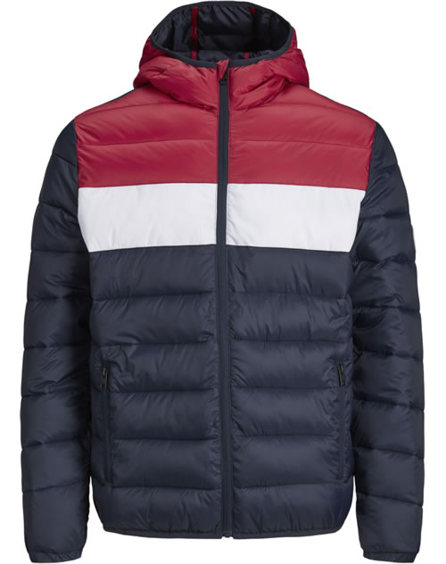 Tolle Jacke mit Kapuze von JACK & JONES JUNIOR für Jungen. Die gesteppte Jacke hat einen mehrfarbigen Streifen-Look.Zwei Reißverschlusstaschen bieten Platz für Kleinigkeiten. Die Jacke ist ein toller Begleiter für kühlere Tage.