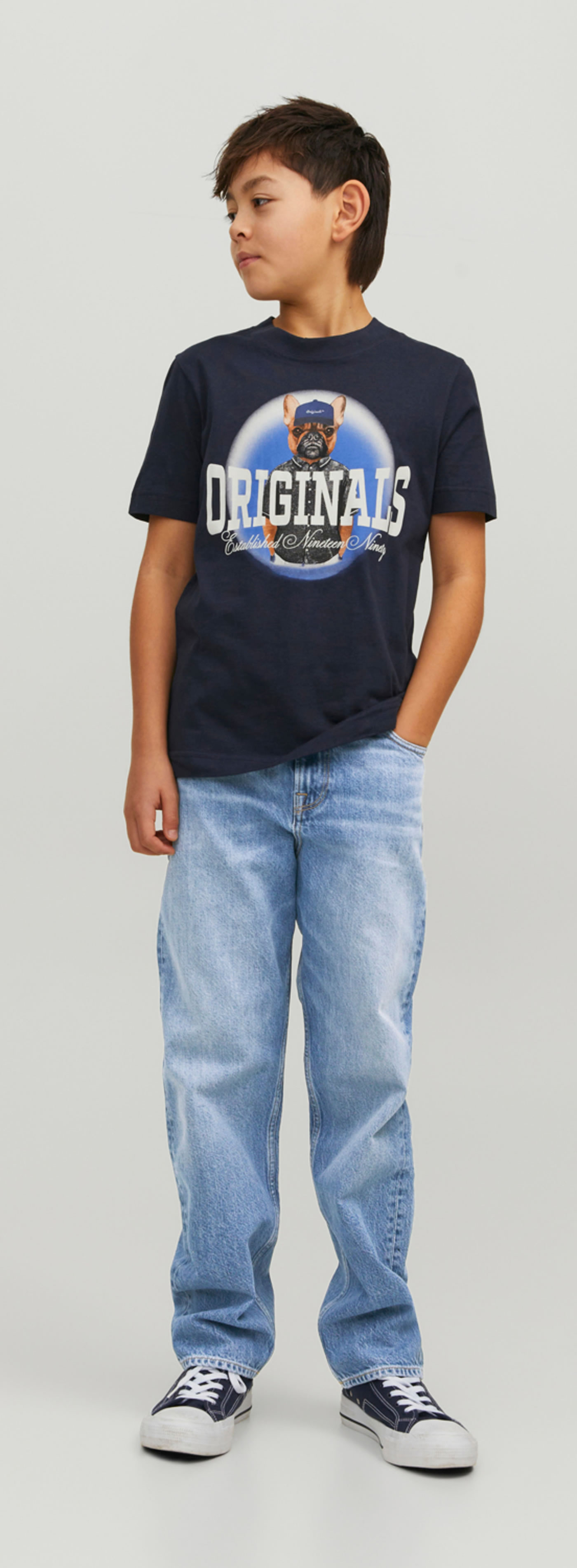 Relaxed Jeans von Jack & Jones für Jungen. Die Hose hat fünf Taschen. Die modische Waschung und trendige Schnitt sind zusätzliche Hingucker. Die Weite ist in der Taille regulierbar.
