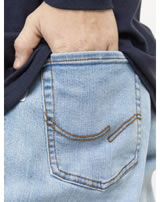 Regular Jeans von Jack & Jones für Jungen. Die Hose hat fünf Taschen. Die modische Waschung und trendige Schnitt sind zusätzliche Hingucker. Die Weite ist in der Taille regulierbar.