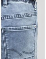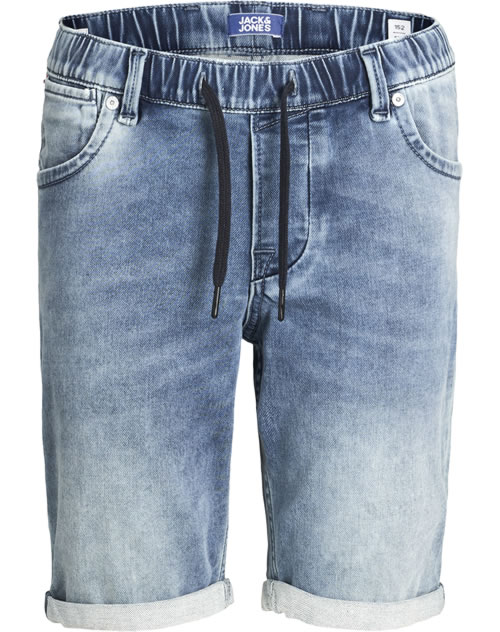 Jeans-Shorts von Jack & Jones für Jungen. Die Hose hat fünf Taschen und einen Gummizugbund mit Kordel. Die modische Waschung und tief sitzende Po-Taschen sind zusätzliche Hingucker. Die Hosenbeine sind lässig umgeschlagen. Die Jeanshose ist dank des Stretch-Anteils klasse dehnbar.