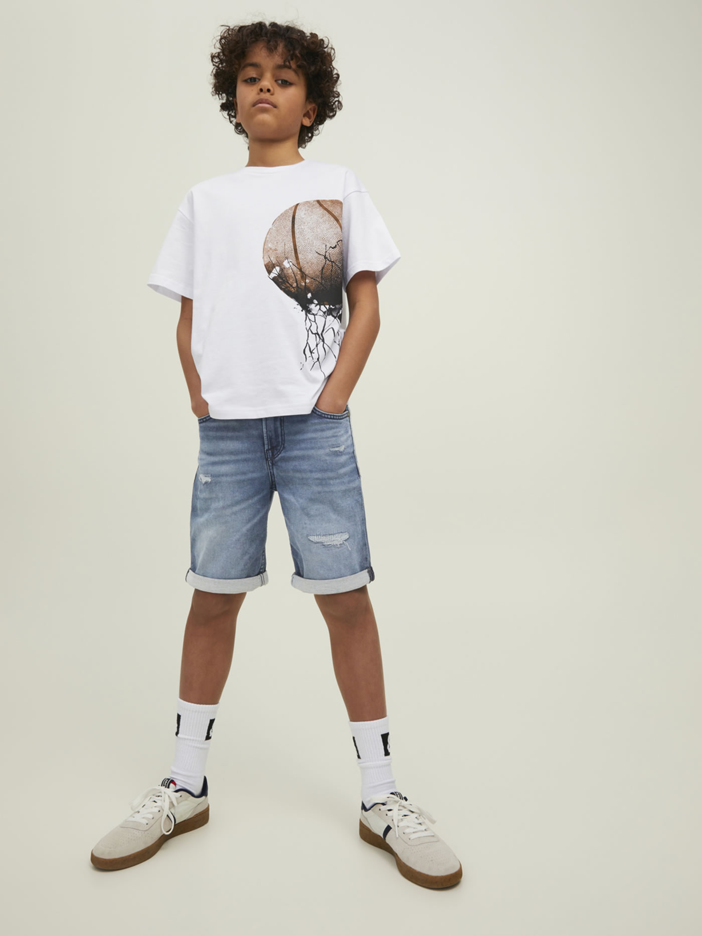 Jeans-Shorts von Jack & Jones für Jungen. Die Hose hat fünf Taschen. Die modische Waschung und trendige Cut-Outs sind zusätzliche Hingucker. Die Hosenbeine sind lässig umgeschlagen. Die Jeanshose ist dank des Stretch-Anteils klasse dehnbar. Die Weite ist in der Taille regulierbar.
