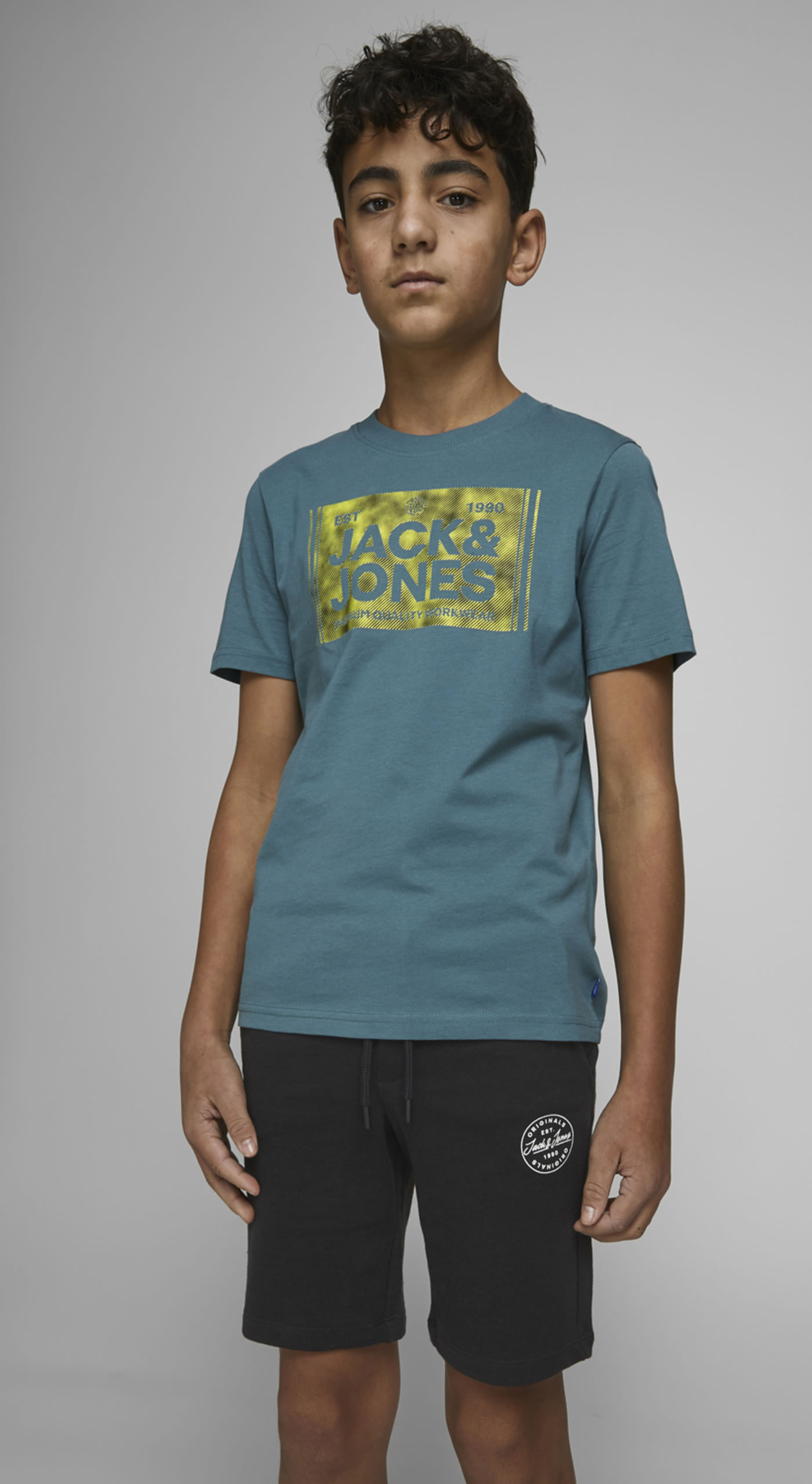 Moderne Sweat-Shorts von Jack & Jones für Jungen. Diese schwarze Shorts ist gut kombinierbar und dank des breitem Gummizugbundes sehr bequem. Der farbige Logo-Aufdruck am linken Bein bildet einen schönen Kontrast. Die Weite ist in der Taille durch einen Kordelzug regulierbar.