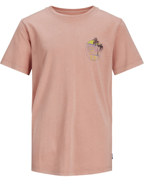 Weiches und bequemes Kurzarm-Shirt in rosette mit Rundhalsausschnitt und Logo-Print auf Rücken und Brust von JACK & JONES JUNIOR für Jungen. Das Shirt aus Baumwolle läßt sich prima kombinieren.