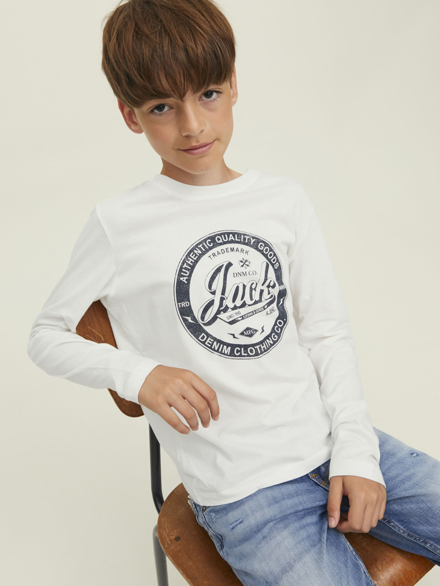 Jack & Jones Junior T-Shirt Langarm JJEJEANS NOOS cloud dancer