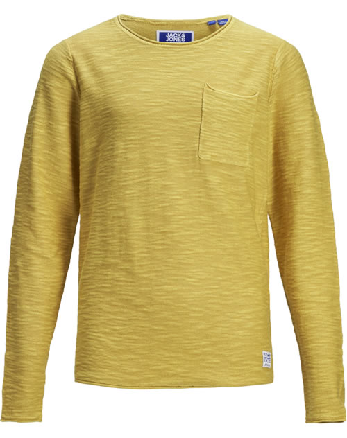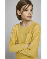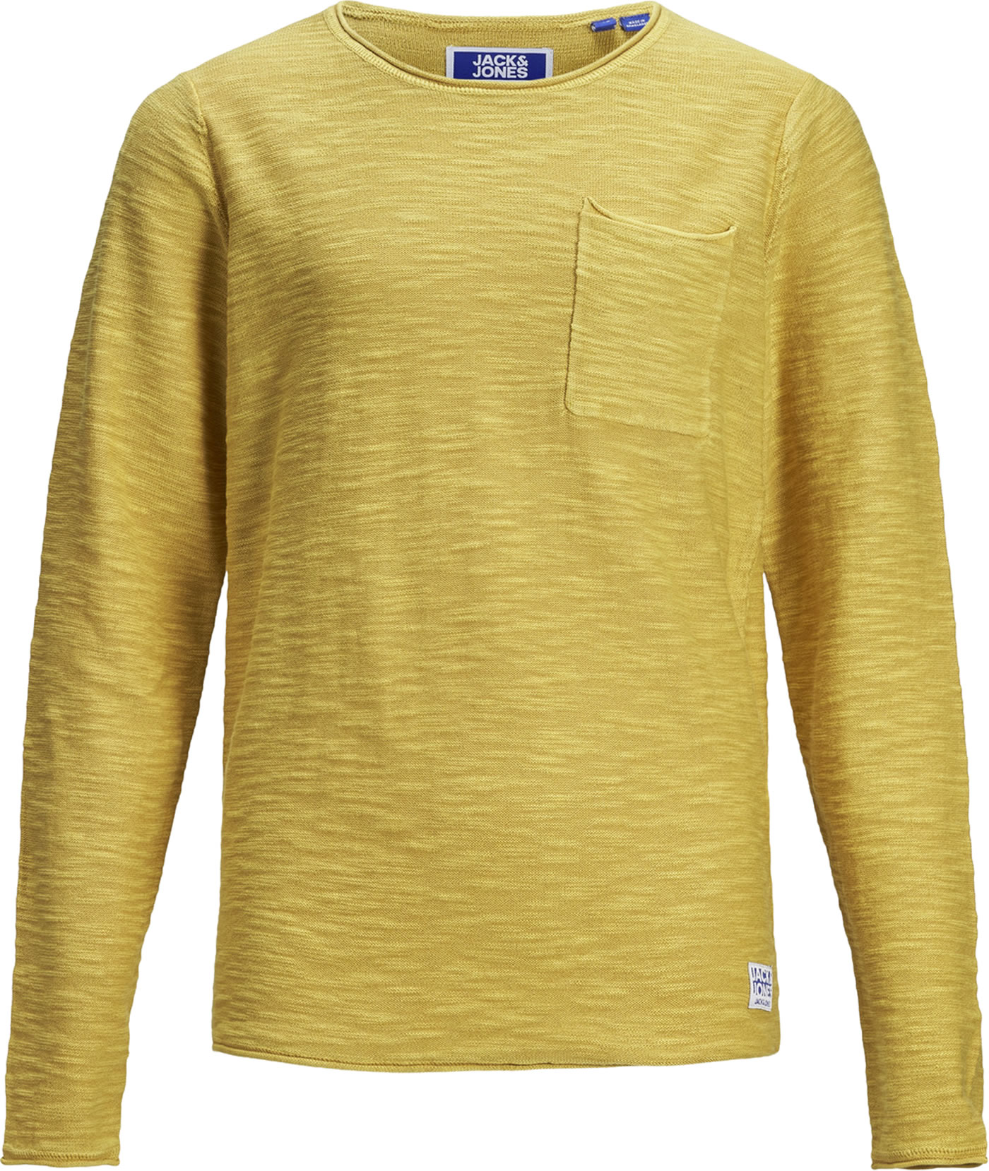 Weicher, lässiger Pullover in yolk yellow mit Rundhalsausschnitt und Brusttasche von JACK & JONES JUNIOR für Jungen. Der bequeme Pulli aus Baumwolle läßt sich prima kombinieren
