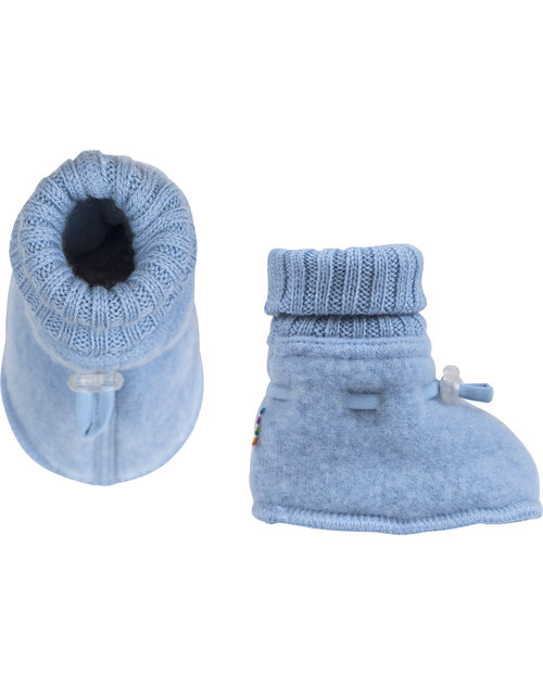 Joha Baby-Booties/Hüttenschuhe aus Merino-Wollfleece - Blau Melange