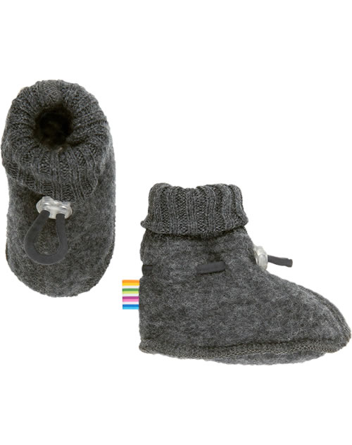 Joha Baby-Booties/Hüttenschuhe aus Merino-Wollfleece - Koks Melange