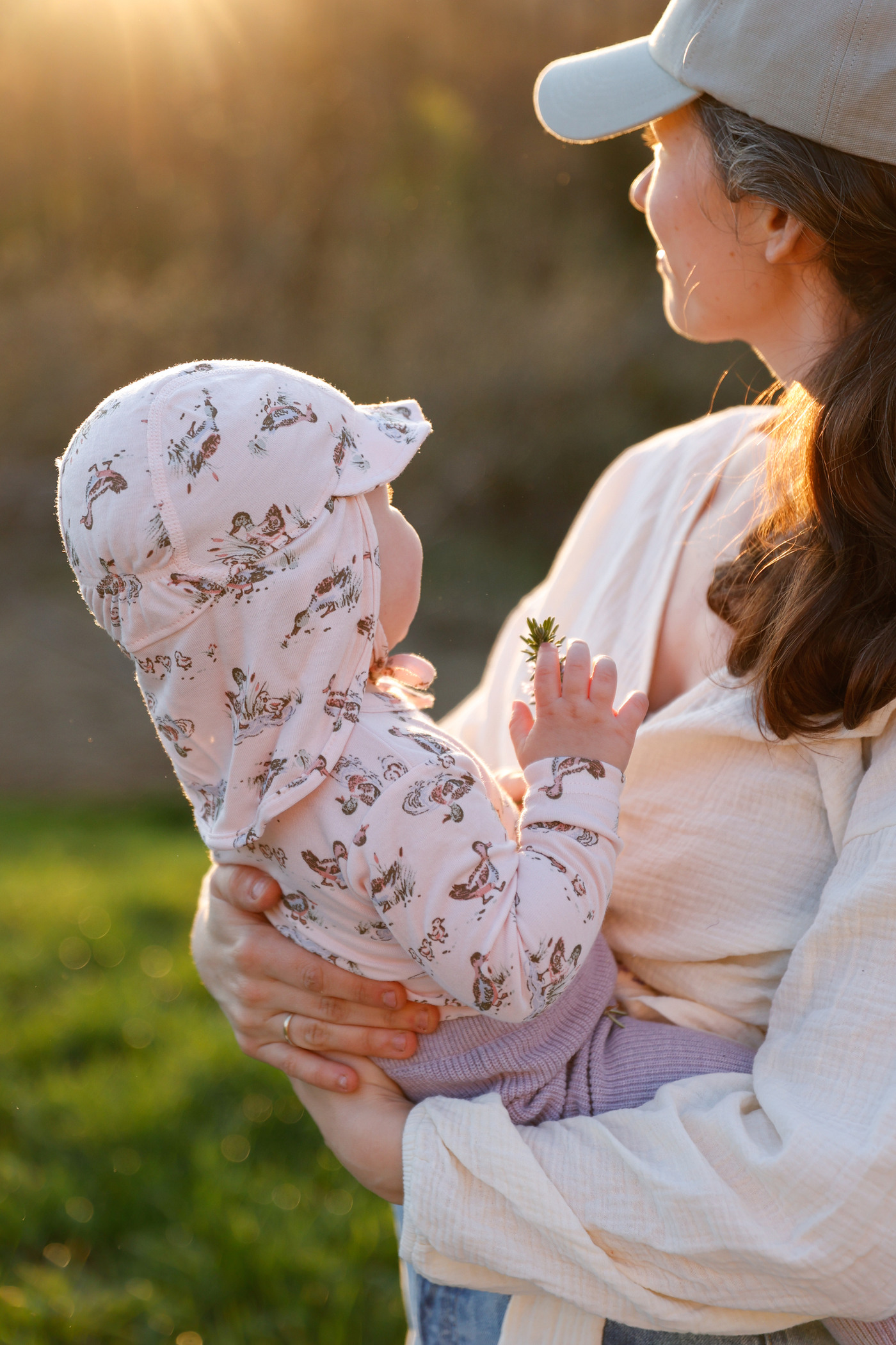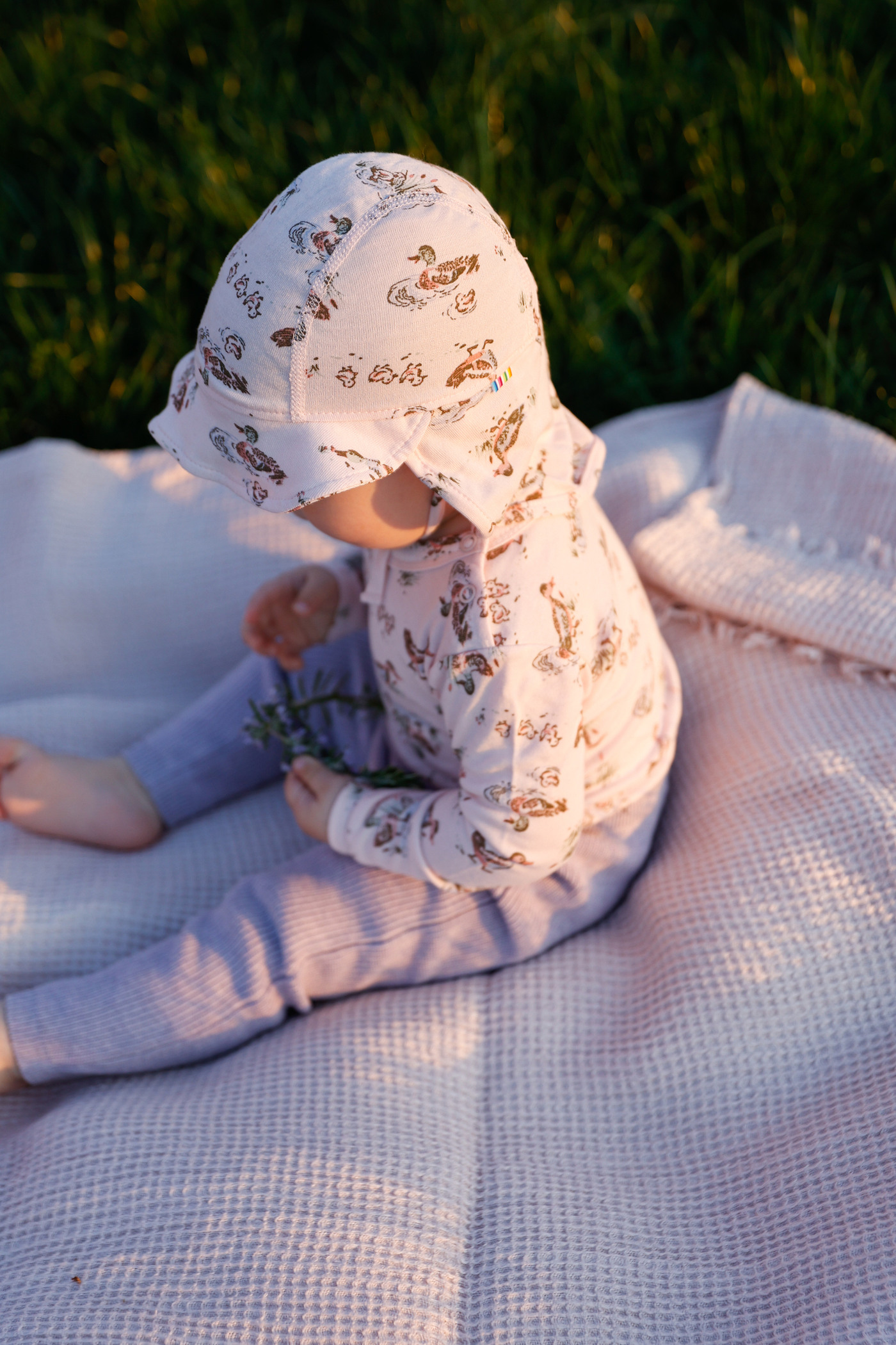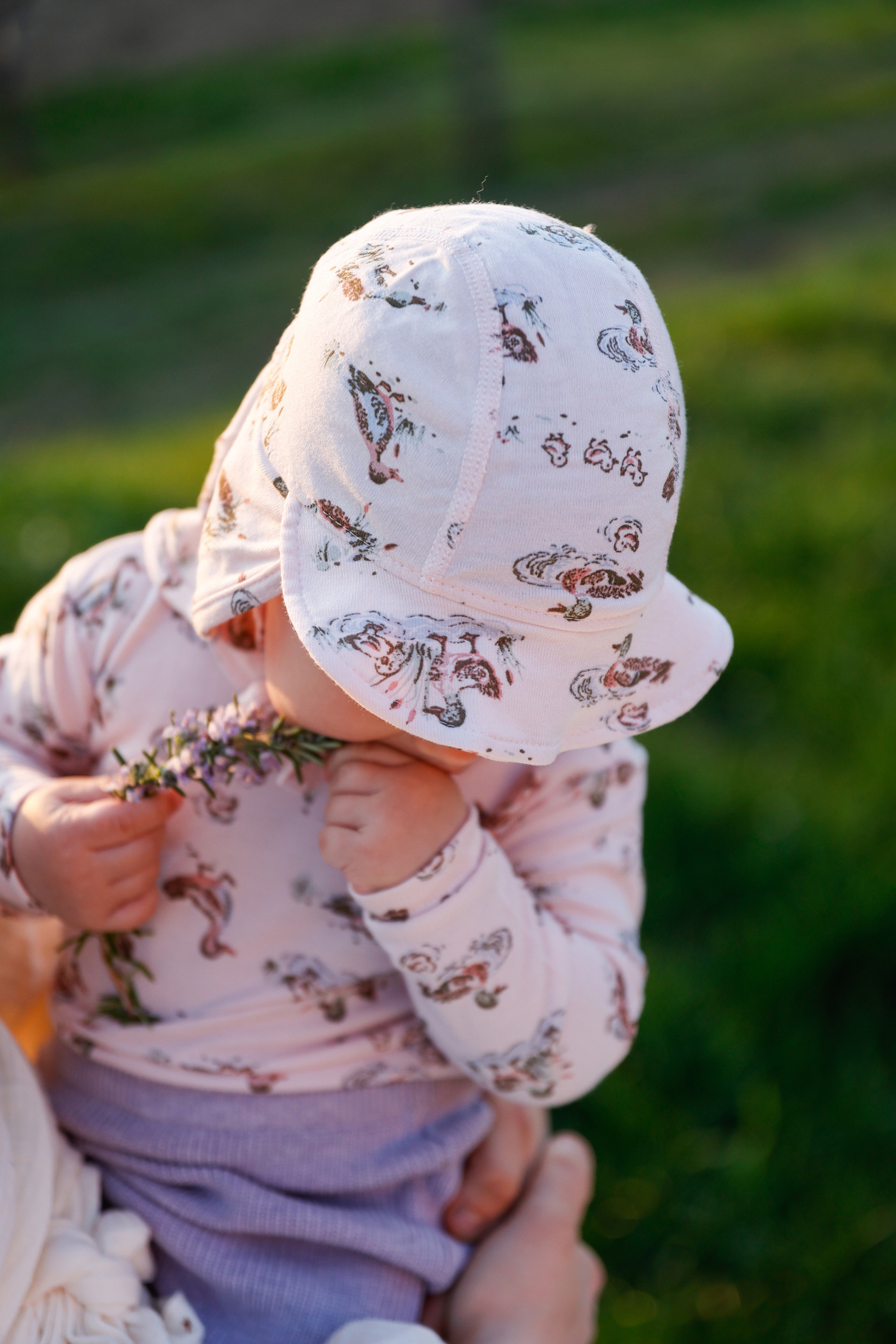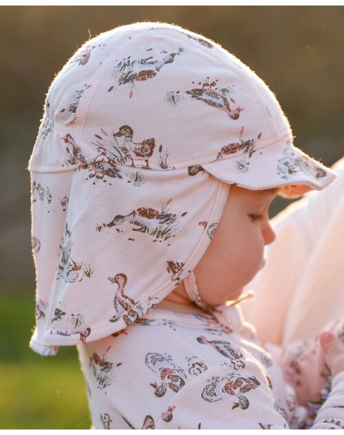 Joha Baby-Sommerhut mit Band aus Bio-Bambus-Viskose - Rosa/Entenprint