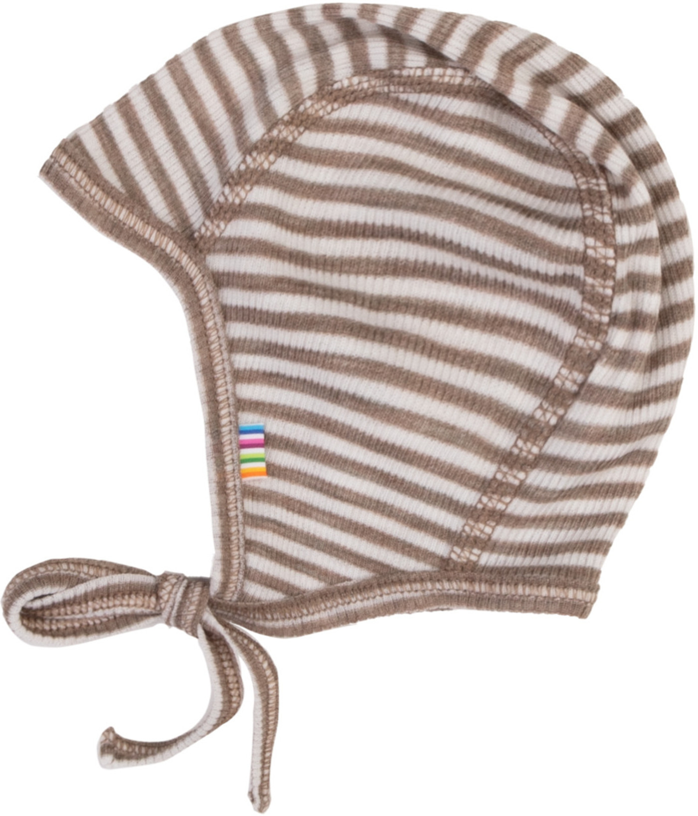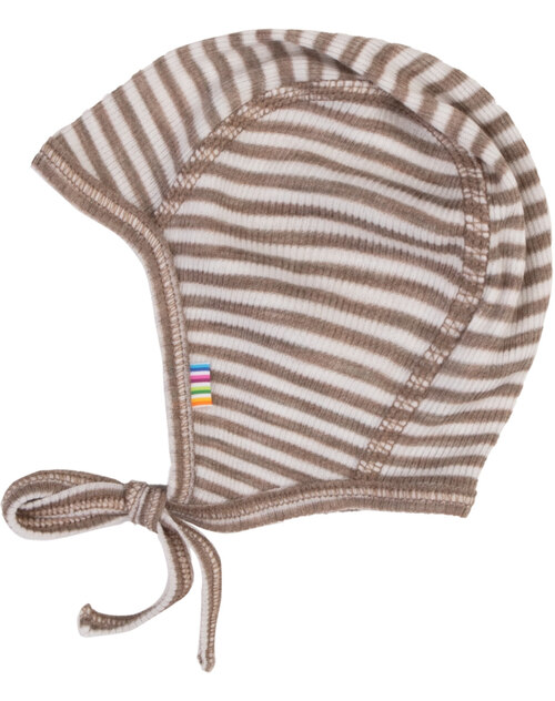 Joha Babymütze im Ringel-Design & zum Binden aus Merinowolle/Seide - Dark Beige