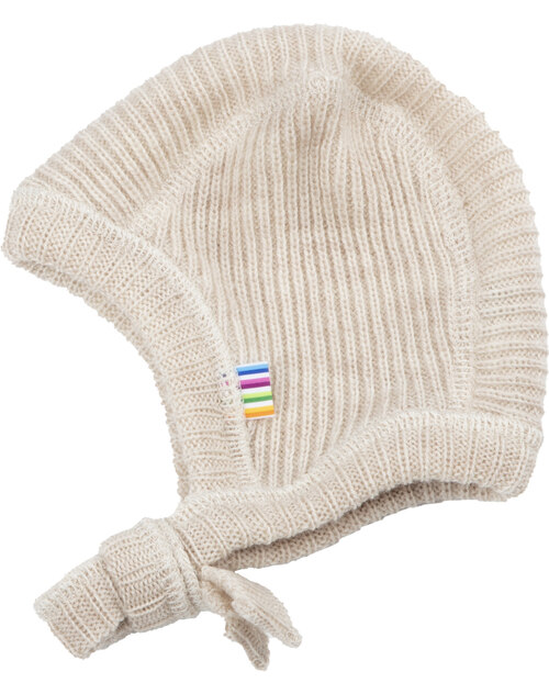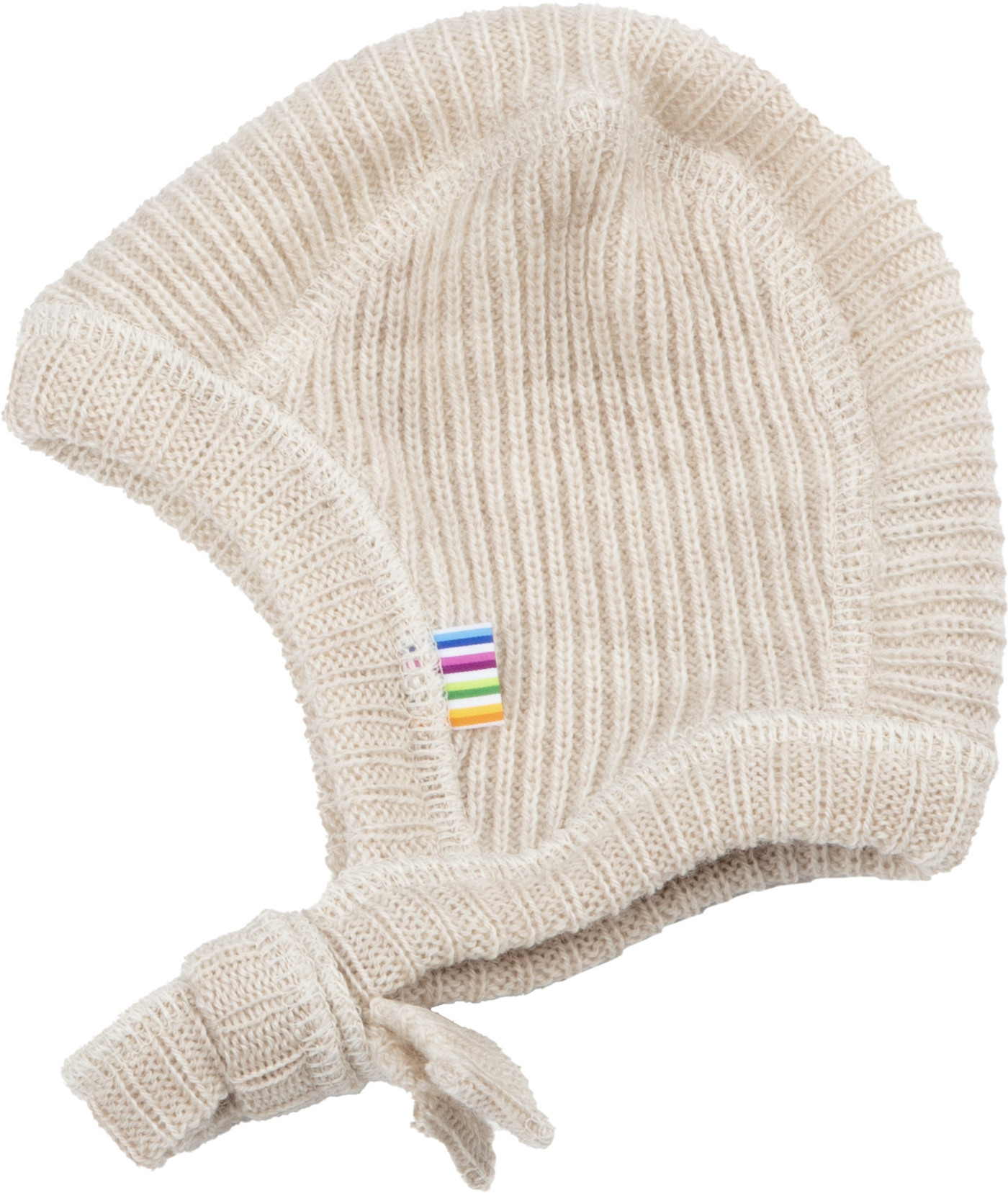 Joha Babymütze mit Band aus Merinowolle in Rip Optik - Creme