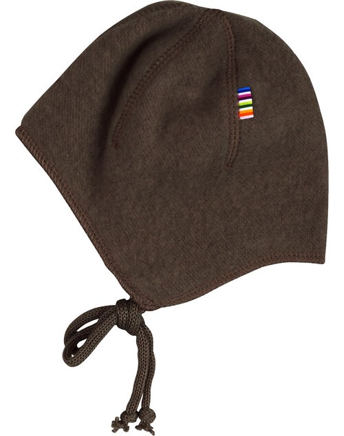 Joha Babymütze mit Band aus Merinowolle/Wollfleece - Dark Bark