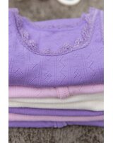 Dieser wunderschöne Langarmbody mit Spitzendetails besteht aus einer hochwertigen Materialmischung aus Merinowolle und Seide und hat ein besonders hübsches Strick-Lochmuster.