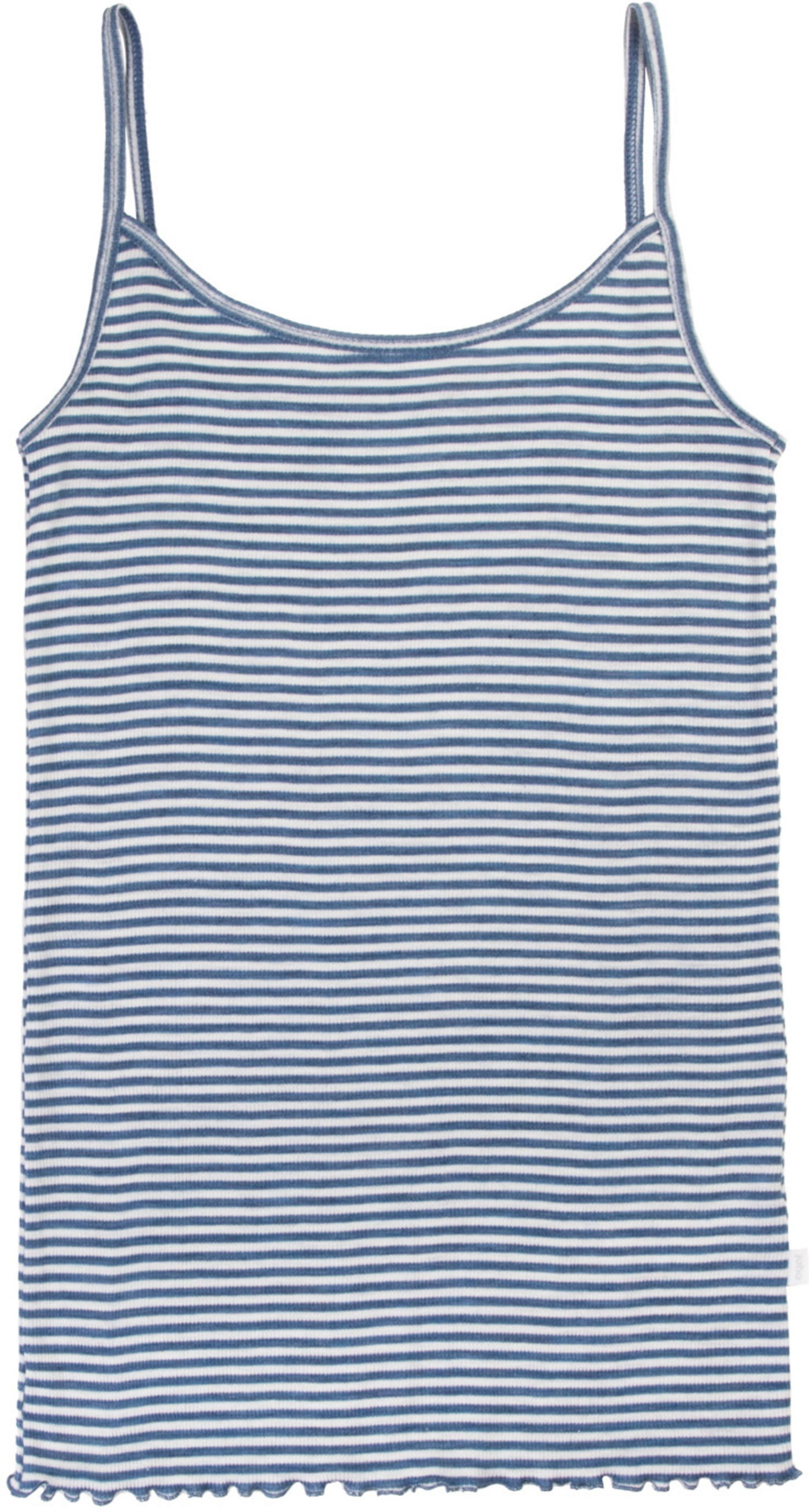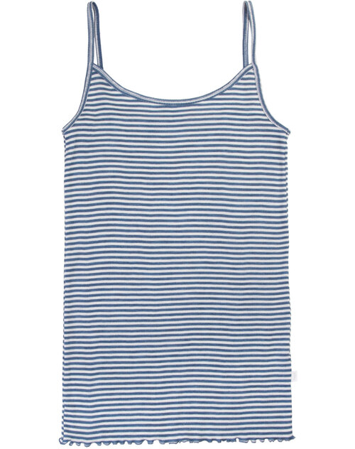 Joha Damen-Top im Ringel-Design mit dünnen Trägern & Rüschensaum aus Merinowolle/Seide - Blue