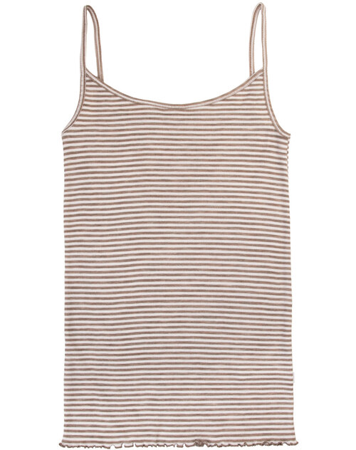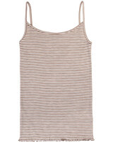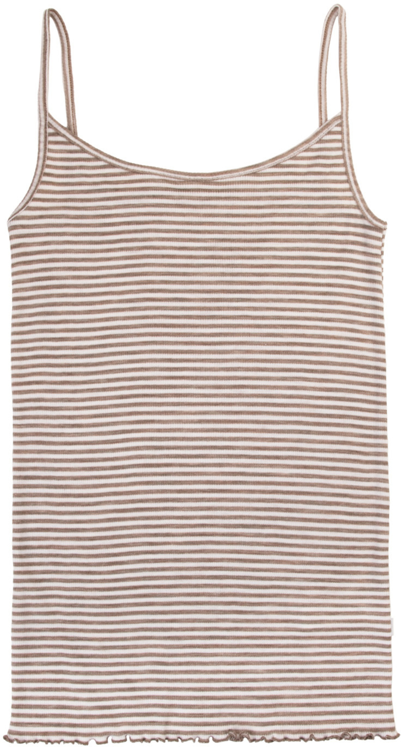 Joha Damen-Top im Ringel-Design mit dünnen Trägern & Rüschensaum aus Merinowolle/Seide - Dark Beige
