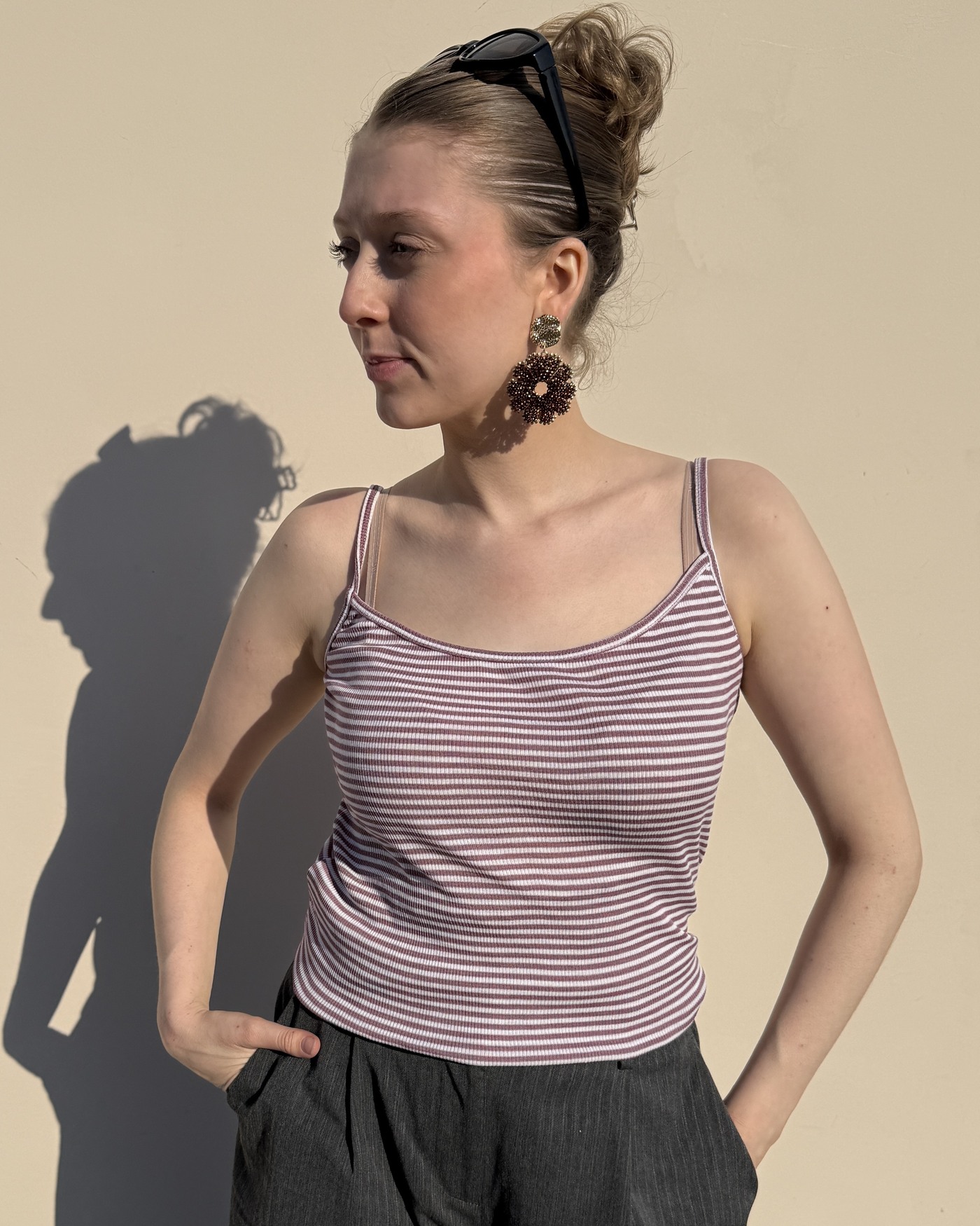 Die Farbe ist schöner als dargestellt. Habe eine Nummer kleiner genommen, da es länger geschnitten ist. Die Träger schneiden zwar dadurch minimal ein, aber das stört mich nicht