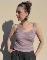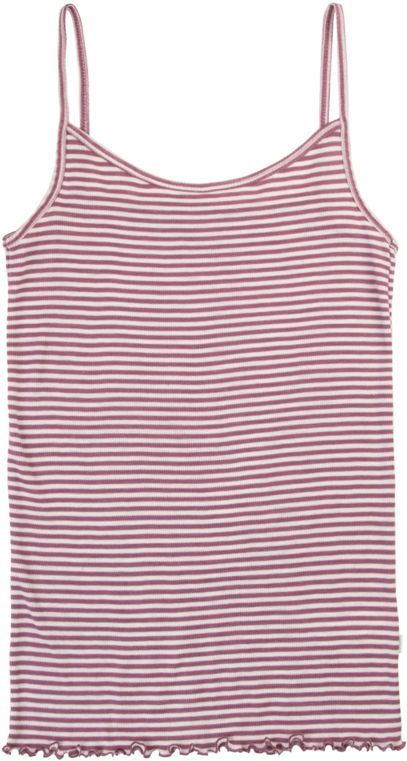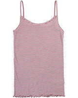Joha Damen-Top im Ringel-Design mit dünnen Trägern & Rüschensaum aus Merinowolle/Seide - Heather