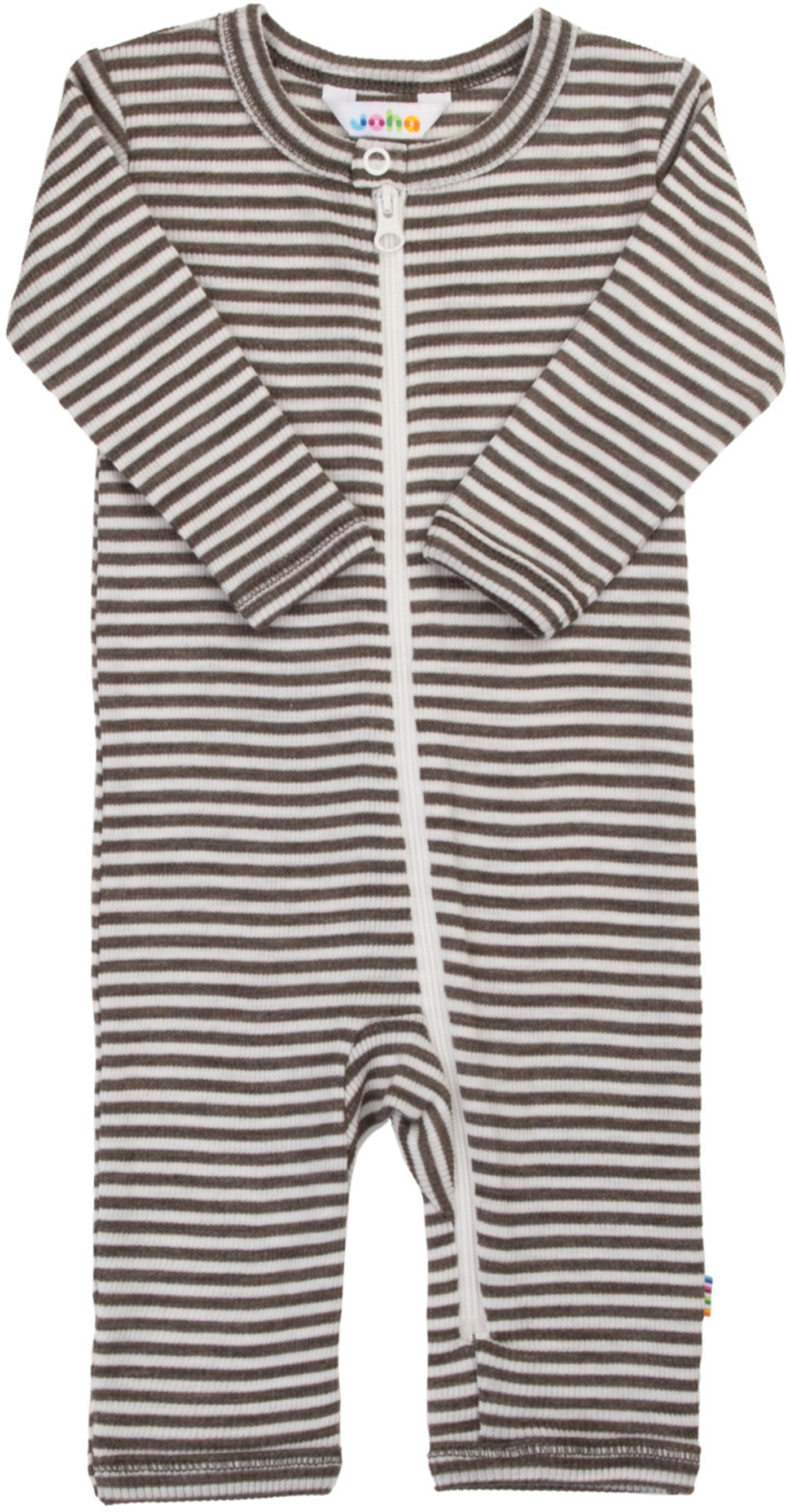 Joha Jumpsuit/Overall im Ringel-Design & mit Reißverschluss aus Merinowolle/Seide - Brown