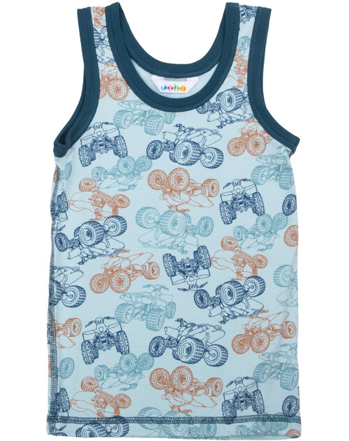 Unterhemd aus Viskose/Bambus und Lycra von JOHA für Jungen. Das Unterhemd hat einen tollen Allover-Druck mit Quads. Das weiche Material sorgt für einen hohen Tragekomfort.