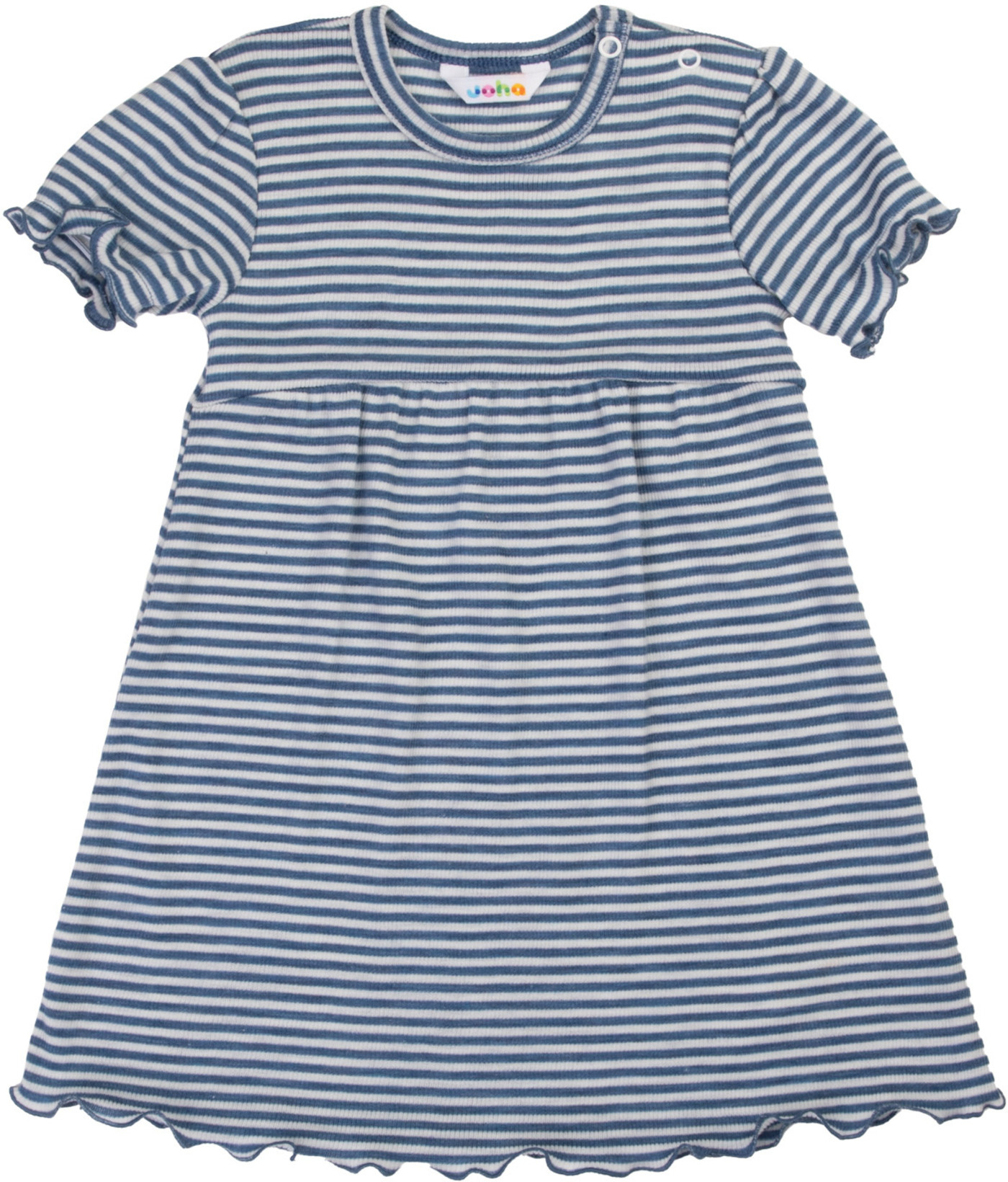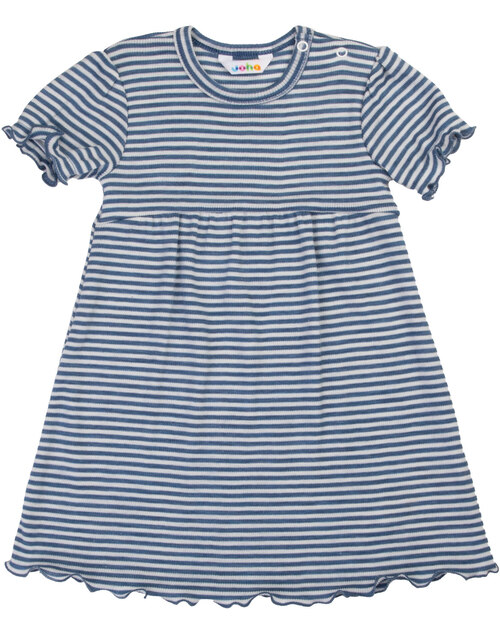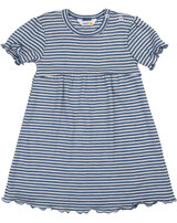 Joha Kurzarmkleid im Ringel-Design & mit Rüschensaum aus Merinowolle/Seide - Blue