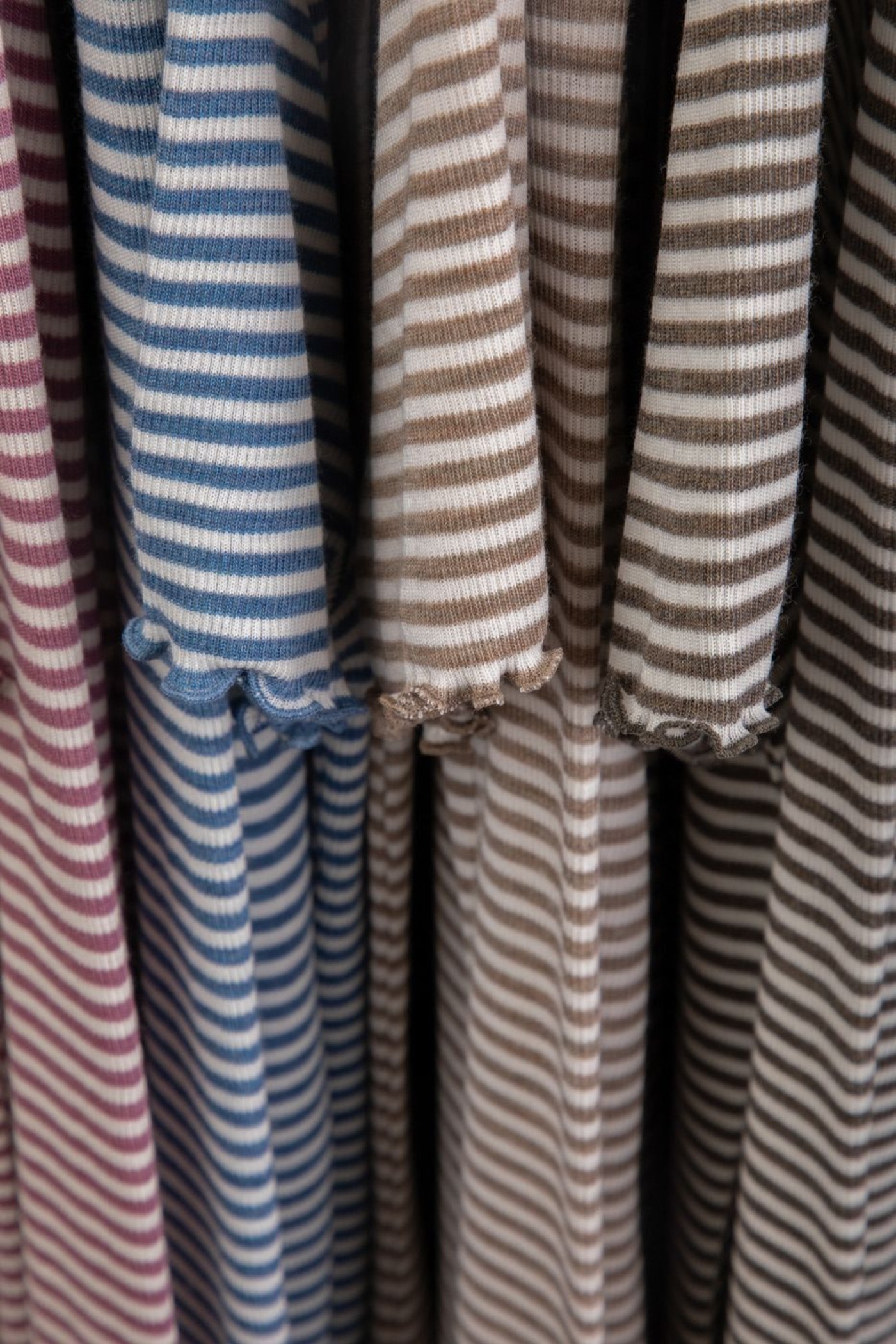 Gefertigt aus einer leichten, hochwertigen Merinowolle-Seide-Mischung, begeistert dieses süße Ringelkleid in harmonisch-natürlichen Farben mit einer wunderbaren Kombination aus Komfort und Design 💜🌿
