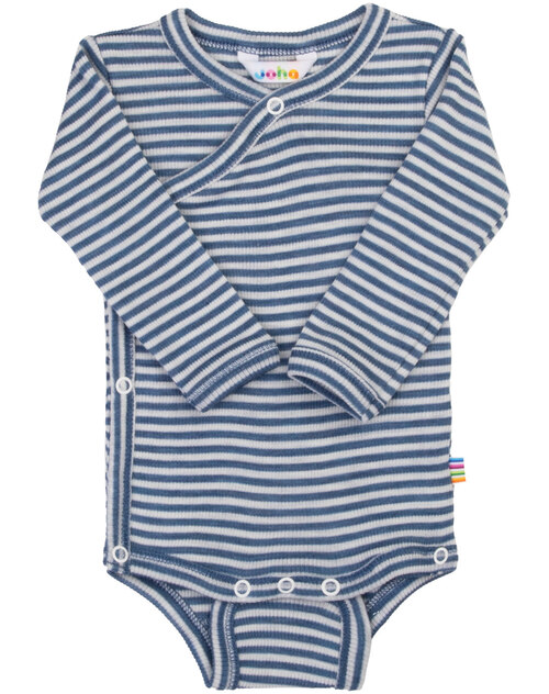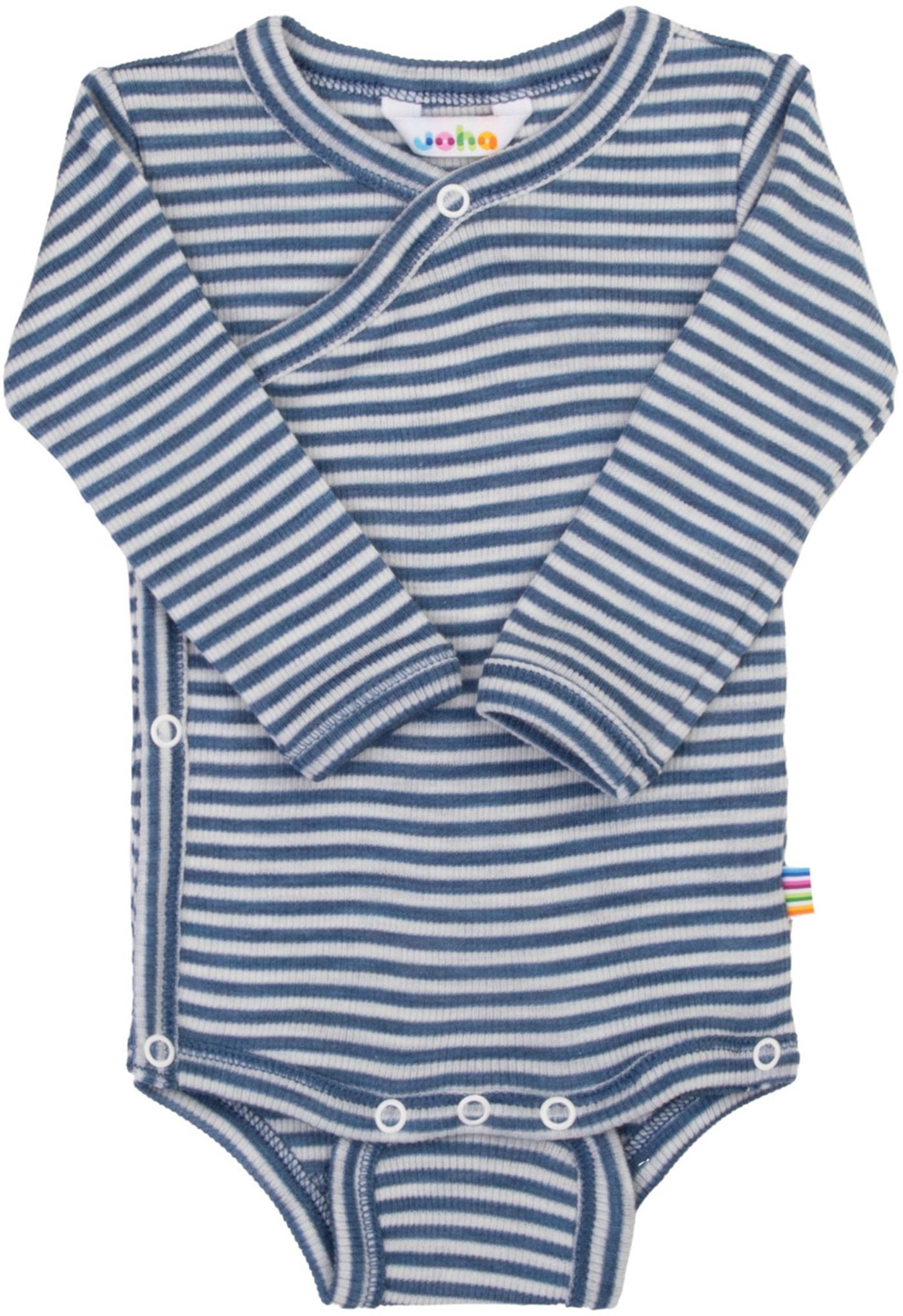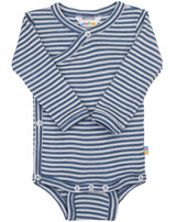 Joha Langarm-Wickelbody im Ringel-Design aus Merinowolle/Seide - Blue