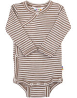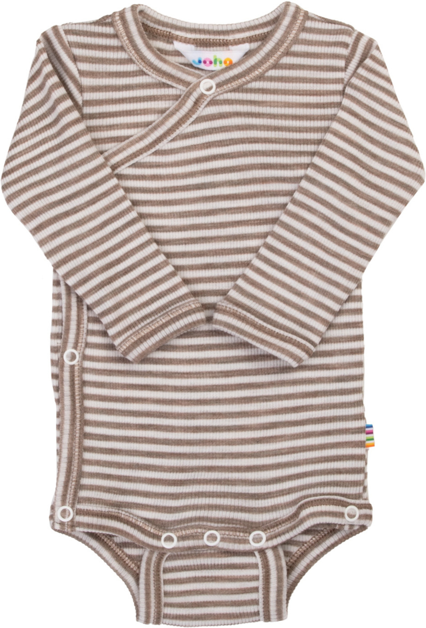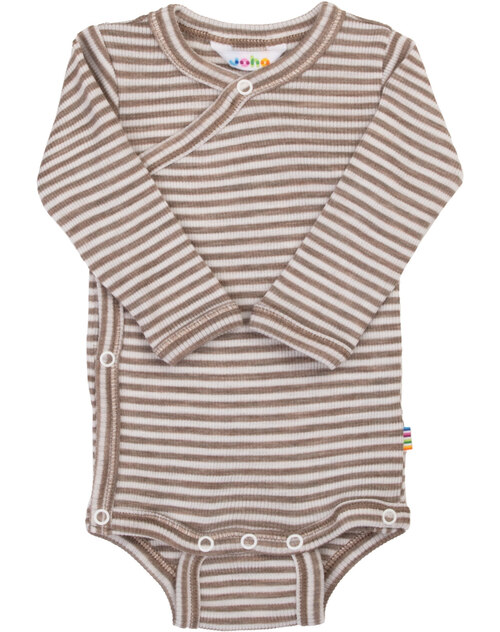 Joha Langarm-Wickelbody im Ringel-Design aus Merinowolle/Seide - Dark Beige