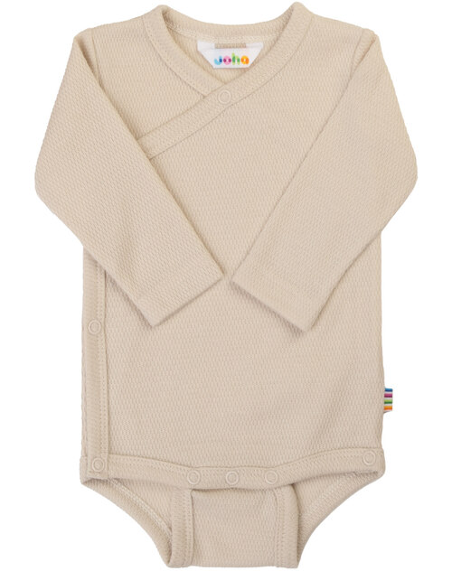 Joha Langarm-Wickelbody mit Piqué-Struktur aus Bio-Baumwolle - Hellbeige