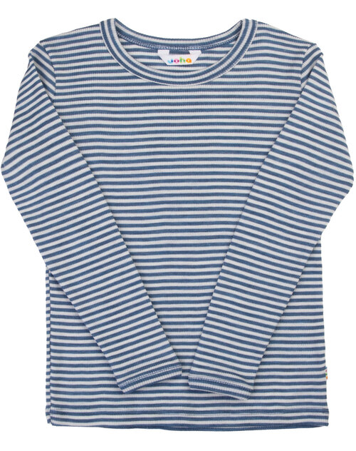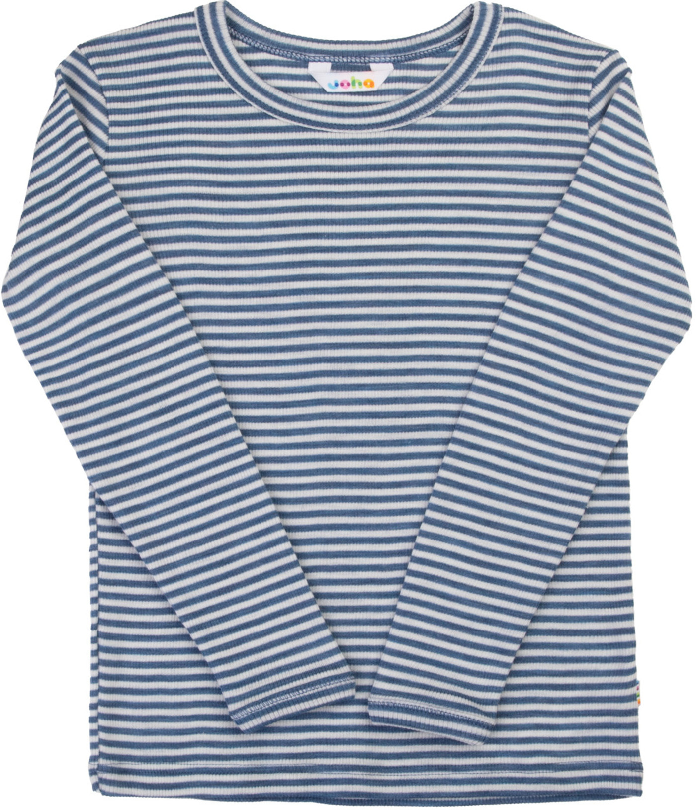 Joha Langarmshirt/Bluse im Ringel-Design aus Merinowolle/Seide - Blue