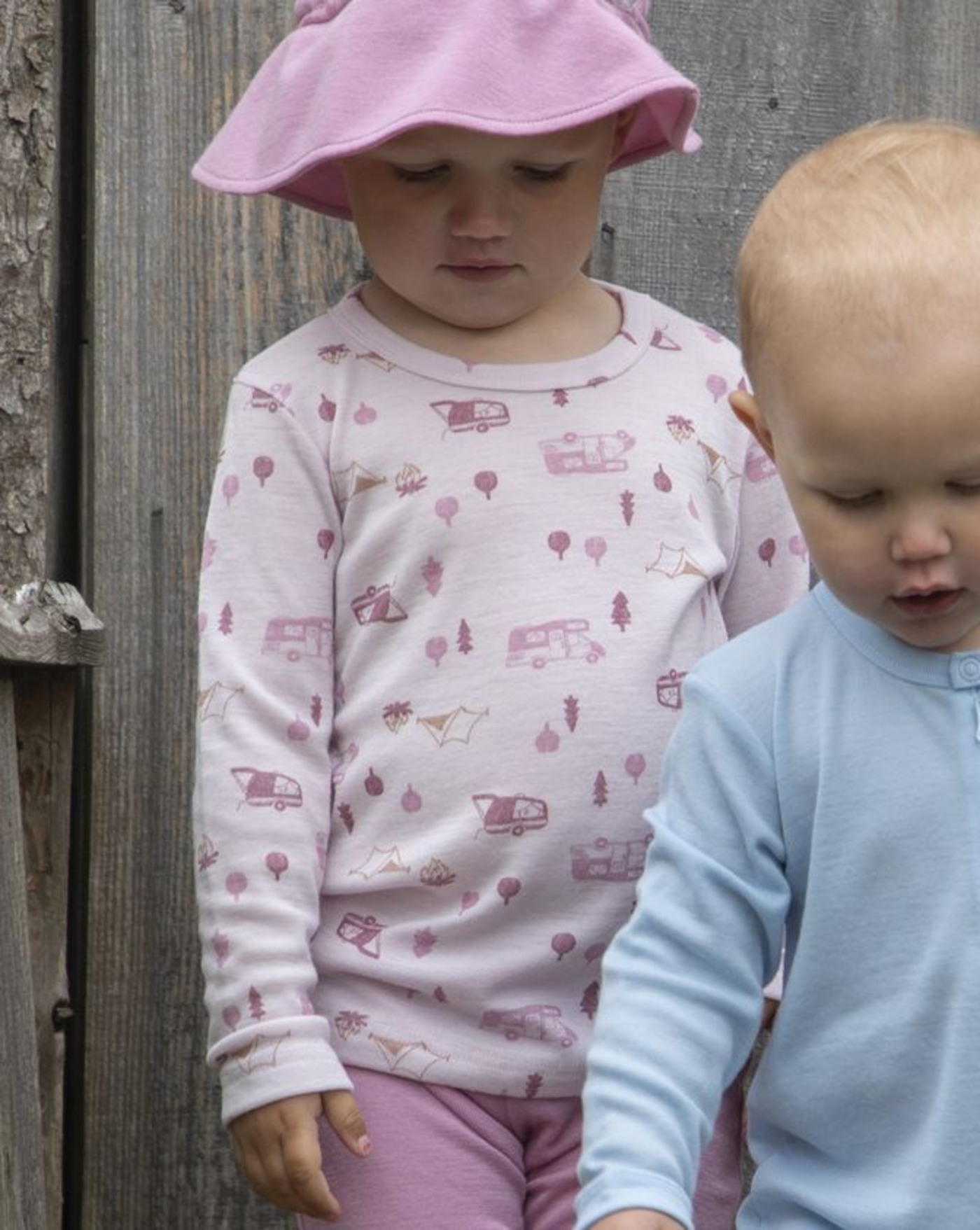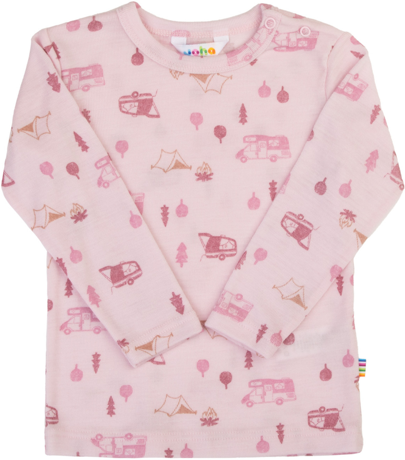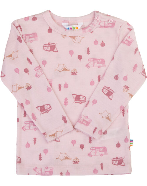 Joha Langarmshirt mit Camping-Print aus 100 % Merinowolle - Hellrosa