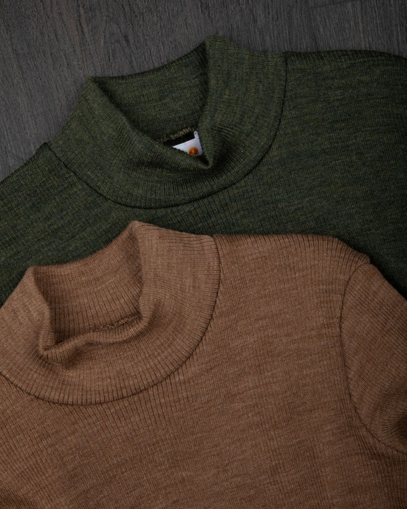 Joha Langarmshirt mit Stehkragen aus Merinowolle - Warm Braun