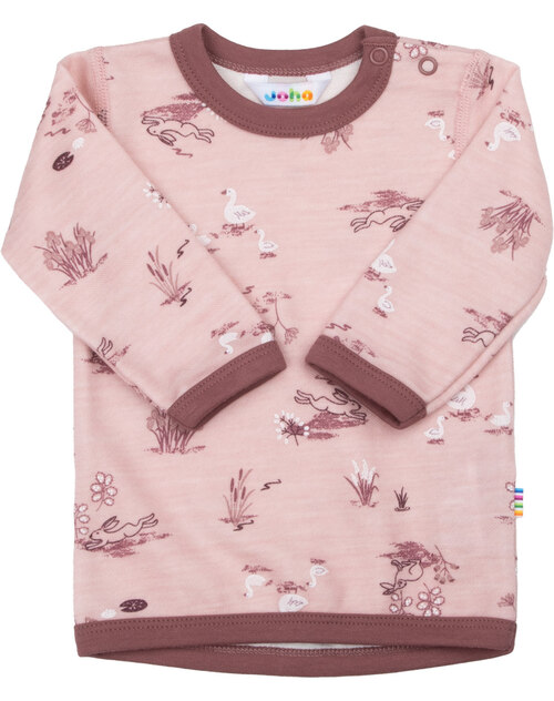 Joha Langarmshirt mit Tierprint aus Merinowolle/Bio-Bambus - Rosa