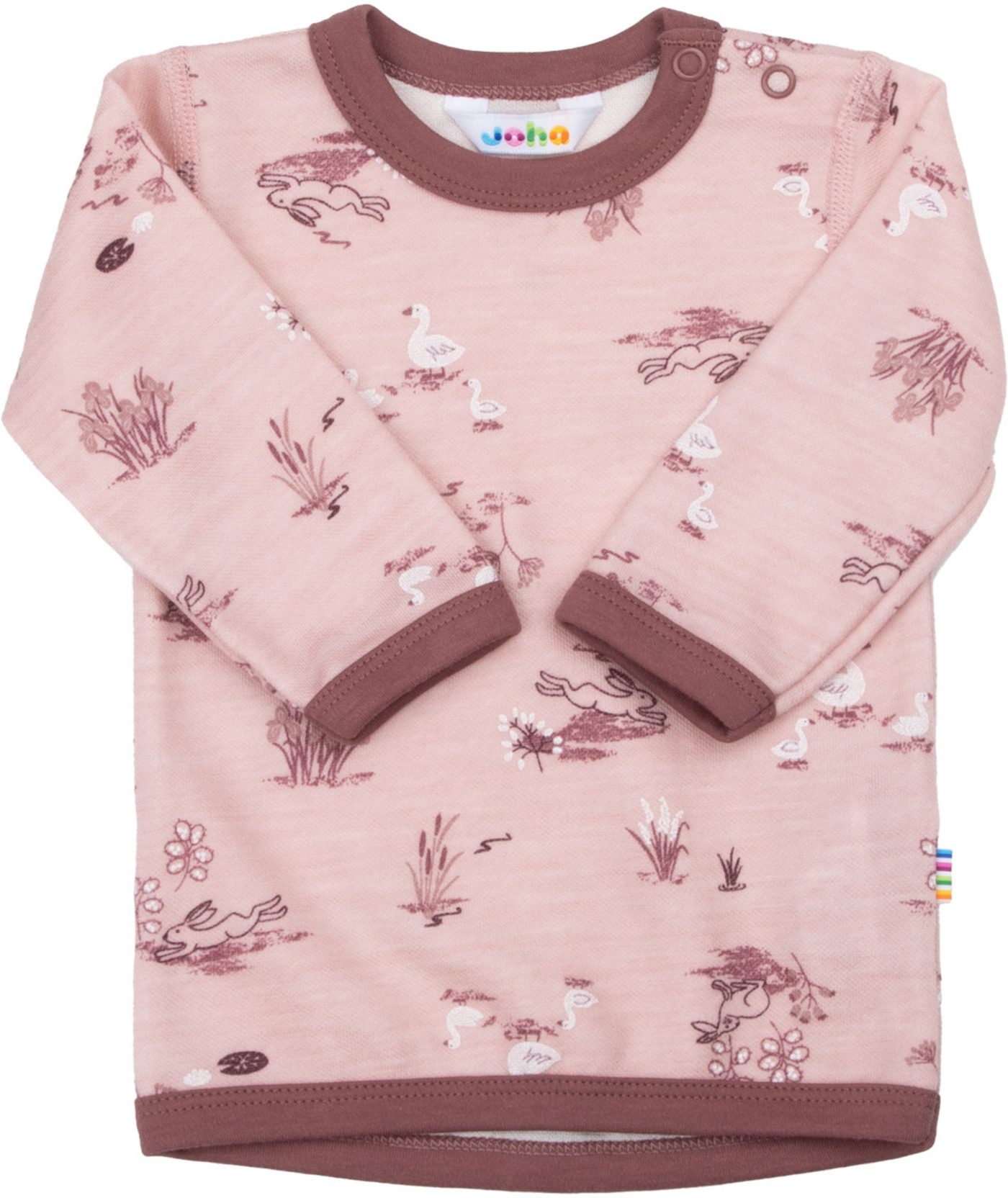 Dieses schöne Langarmshirt mit süßem Häschen, Schwan und Blumen- Print von Joha ist aus Merinowolle/Bio-Bambus gefertigt und somit super bequem 🦢 🐇