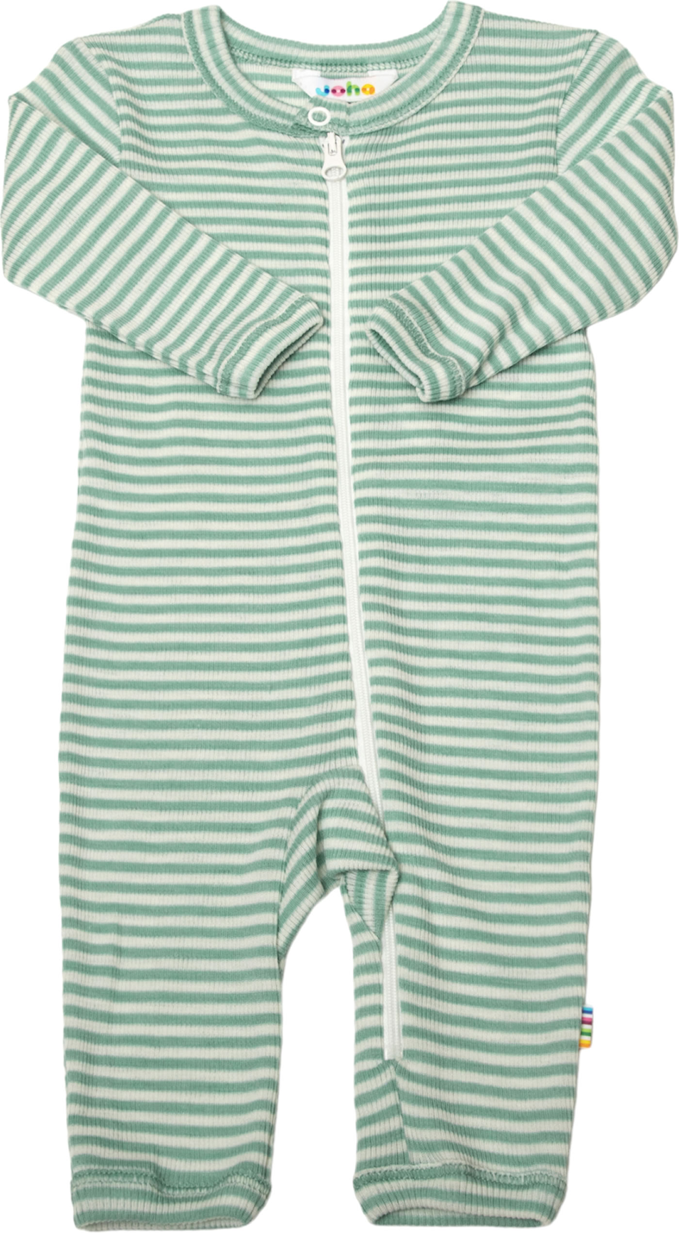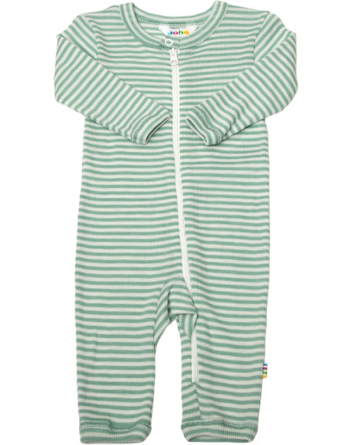Niedlicher gestreifter Baby-Overall von JOHA. Das Material ist auf Baby´s Haut ganz angenehm. Der praktische lange Reißverschluss sorgt für ein schnelles und erleichtertes An- und Ausziehen.