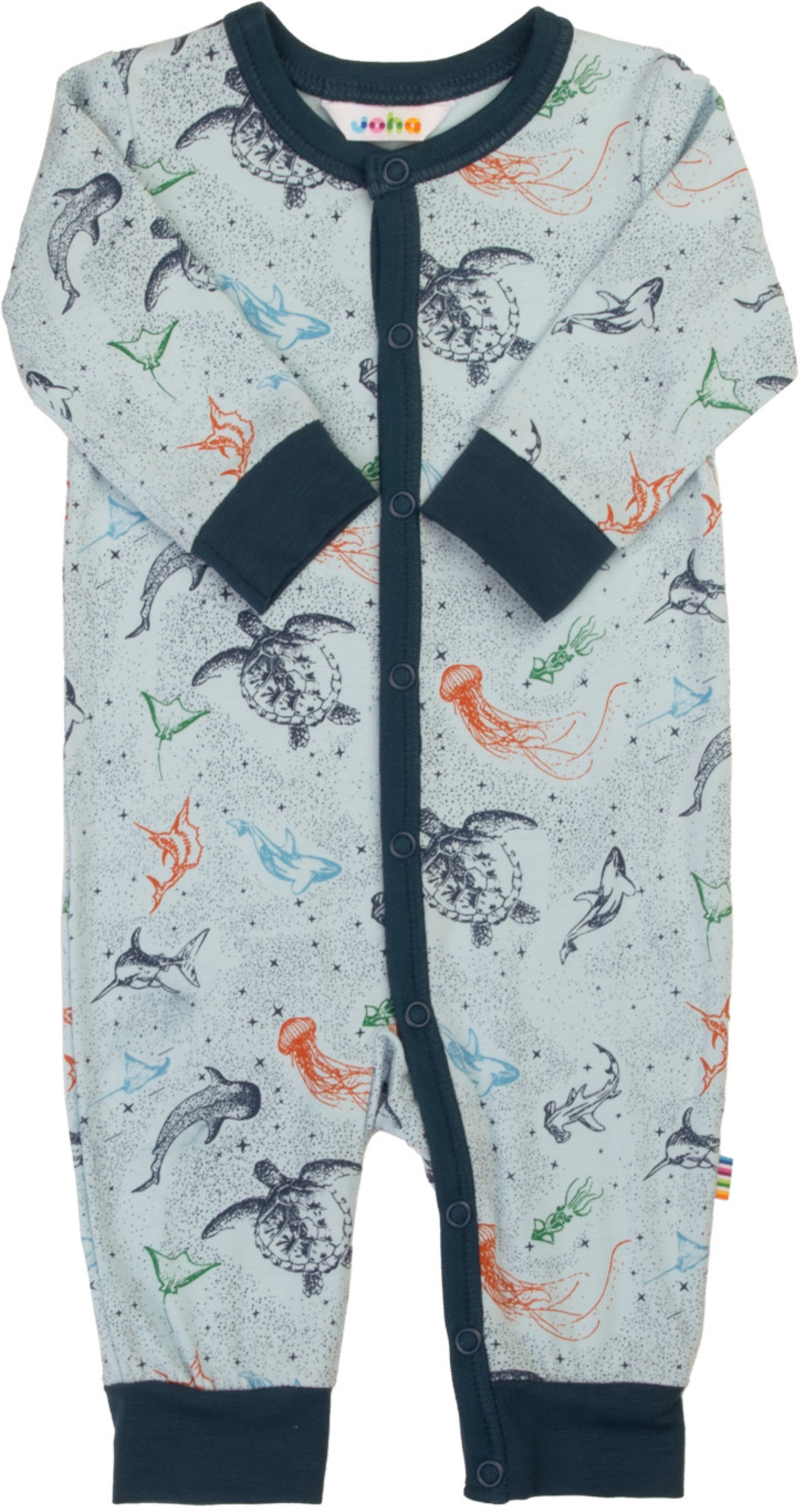 Das liebevolle Design mit tollen Meerestieren verleiht dem Overall einen verspielten Look 🦈🐢✨