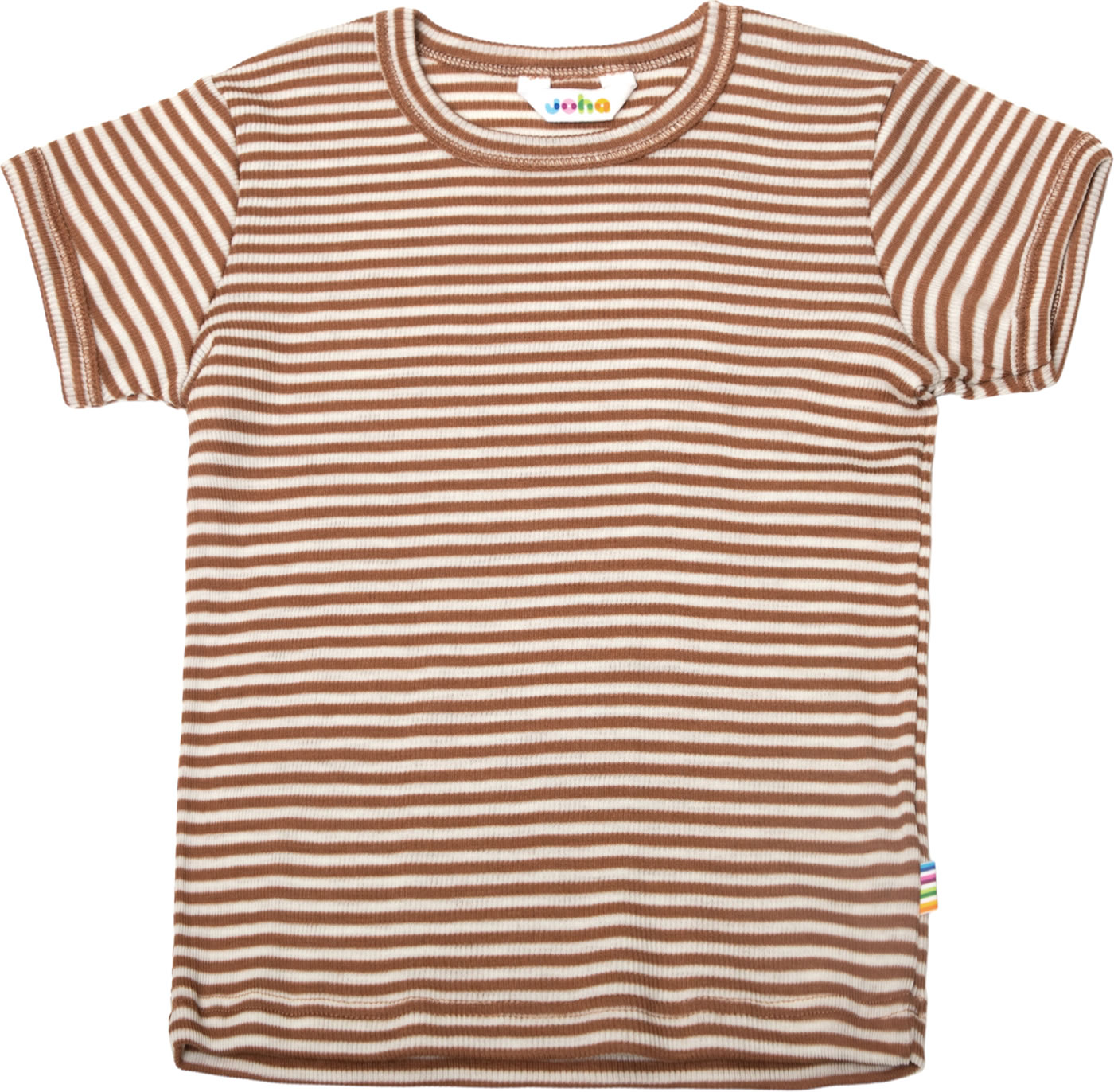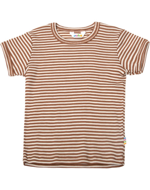 Joha Shirt Kurzarm Merinowolle/Seide braun/gestreift