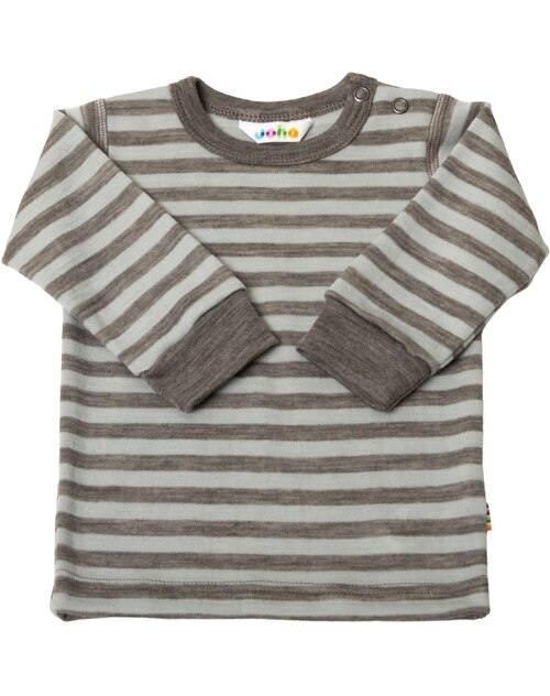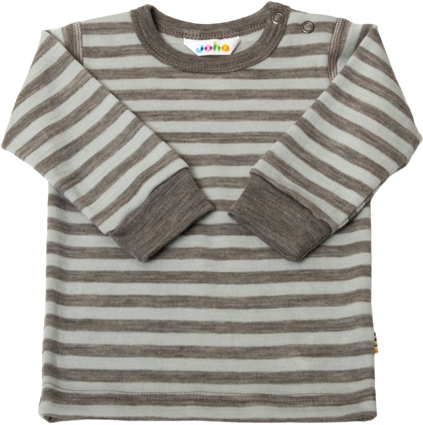 Das anschmiegsame Langarm-Shirt in Streifen-Optik aus Merinowolle von JOHA bietet den höchsten Tragekomfort für die Kleinsten. Das leichte und weiche Material reguliert die Körpertemperatur, leitet Feuchtigkeit ab und verhindert Geruchsbildung. Somit ist das Langarm-Shirt ein ideales Kleidungsstück für die kalten Tage des Jahres.