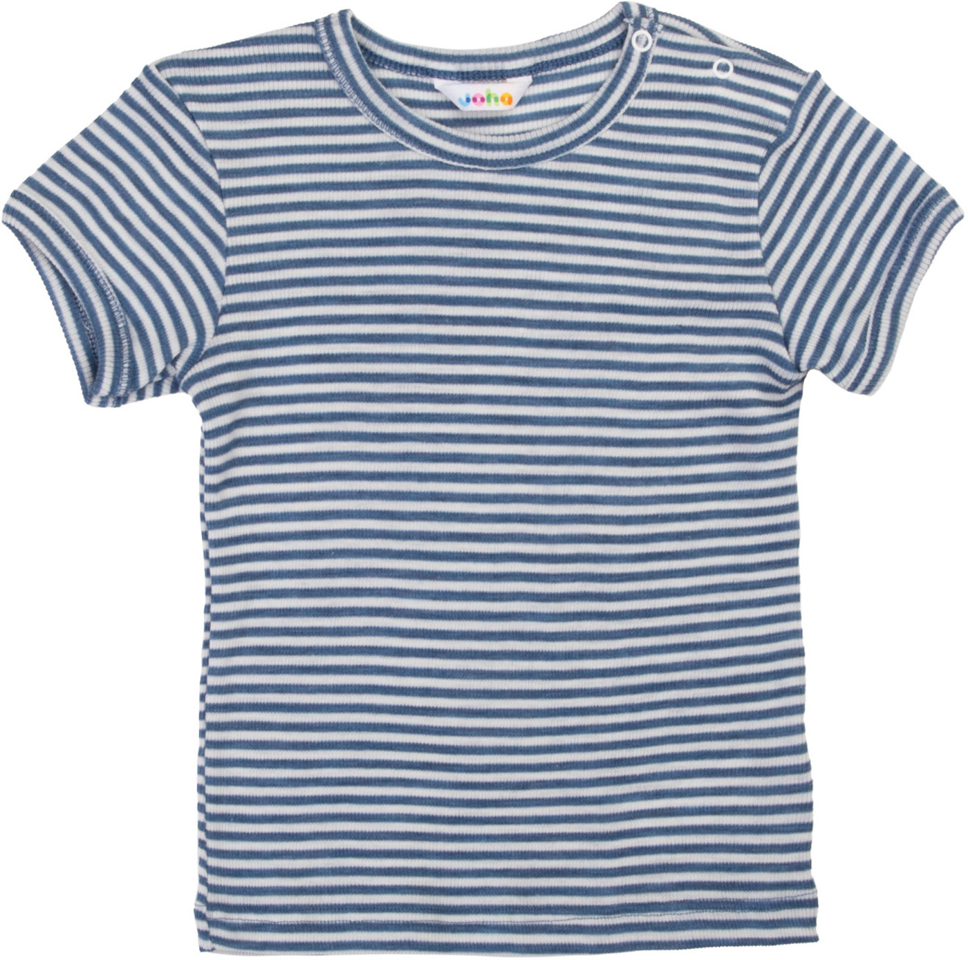 Gefertigt aus einer edlen Mischung aus feiner Merinowolle und Seide begleitet dieses T-Shirt im süßen Ringel-Look kleine Abenteurer weich und bequem durch den Tag 🤸