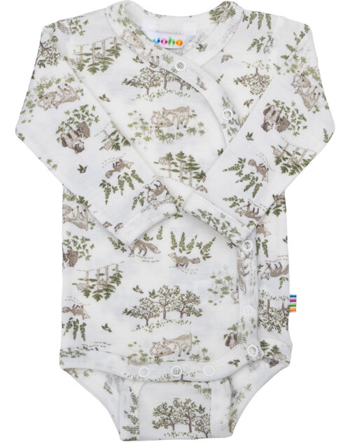 Joha Wickelbody mit Print aus Merinowolle/Seide - Off White