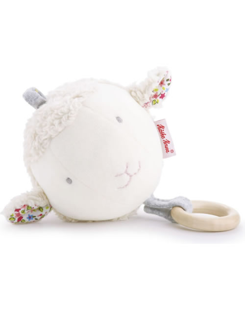 Der Activity Ball Lamm Mojo ist Spielspass für unterwegs. Der Ball symbolisiert ein Lamm. Das Gesicht aus weichem Nickistoff ist liebevoll von Hand gestickt. Der Hinterkopf ist aus kuscheligem Plüsch. Durch eine kleine Schlaufe kann der Ball überall leicht angebracht werden. Der Holzring ist durch ein Klettband befestigt. Im inneren des Balls ist ein Glöckchen zu hören. Der Stoff, als auch ein mit Knisterfolie gefülltes Ohr, laden zum Greifen ein. Der Materialmix von Nicki, Plüsch, Baumwolle und Holz regt die Sinne an. Liebevoll in einem Geschenkkarton verpackt, ist es ein perfektes Geschenk für jedes Kind.