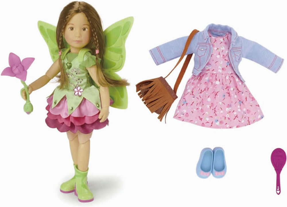 Puppe aus hochwertigem Vinyl, mit beweglichen Gelenken und lebensecht aussehenden Glasaugen.