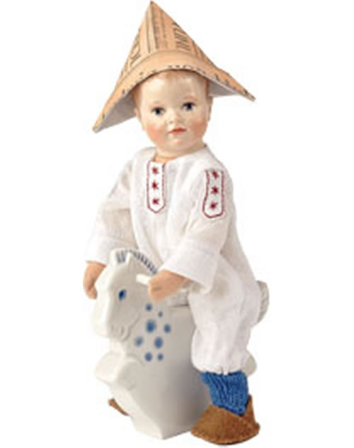 Die Puppe ist ein absolut einzigartiges Sammlerstück, die sich an die bekannten Meissner Kinderdarstellungen des Künstlers Rudolf Hentschel anlehnt und gleichzeitig den typischen Charme einer Käthe Kruse Puppe bewahrt.
