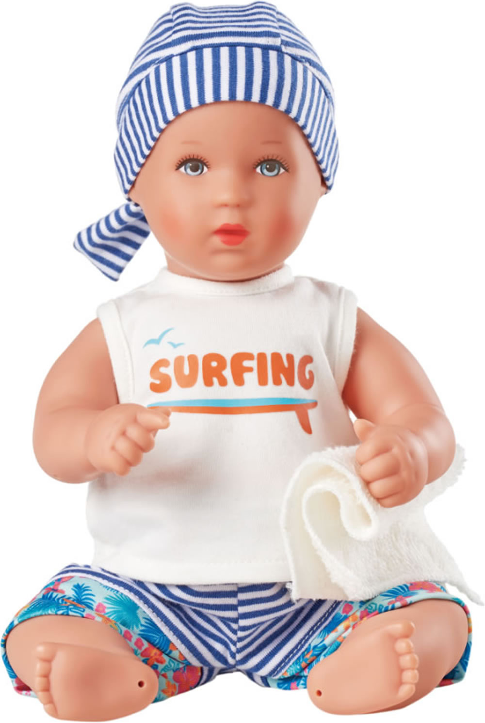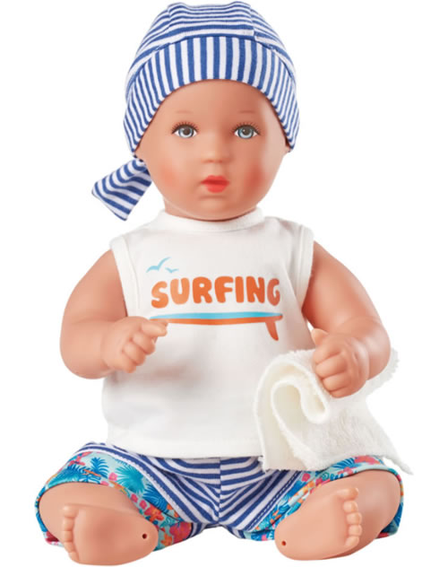 Planscherle Finn ist eine 30 cm große Badepuppe, die für Kinder ab 18 Monaten geeignet ist. Das Gesicht und die Haare sind von Hand bemalt. Er ist komplett aus hochwertigem Vinyl gefertigt.