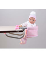 In diesem praktischen und stabilen Tischsitz von Käthe Kruse sitzt die Puppe perfekt mit am Tisch.