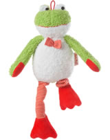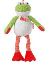 Chopin, der lustige Frosch begleitet Ihren kleinen Schatz ins Land der Träume. Durch ziehen am Fuß ertönt die sanfte Melodie LaLeLu. Genäht aus weichem weißem und grünem Frottee mit roten Farbakzenten, lädt er auch zum Kuscheln ein. Hingucker ist Chopins Schleife.