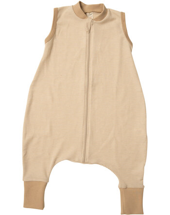 Lilano Langarm-Schlafsack im Ringel-Look aus Wollfrottee - Sand
