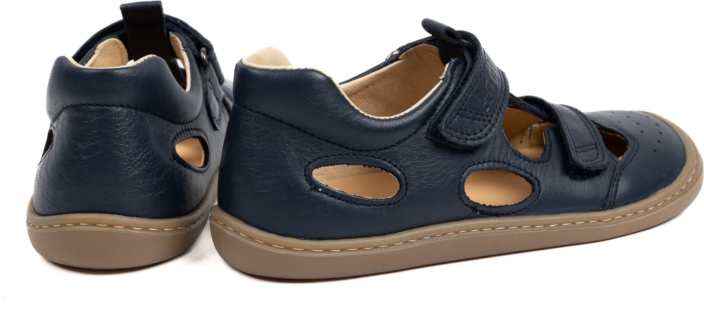Typisch für einen Barfußschuh ist die Außensohle dünn und flexibel, während die flache Innensohle keine Höhendifferenz zwischen Ferse und Vorderfuß aufweist.